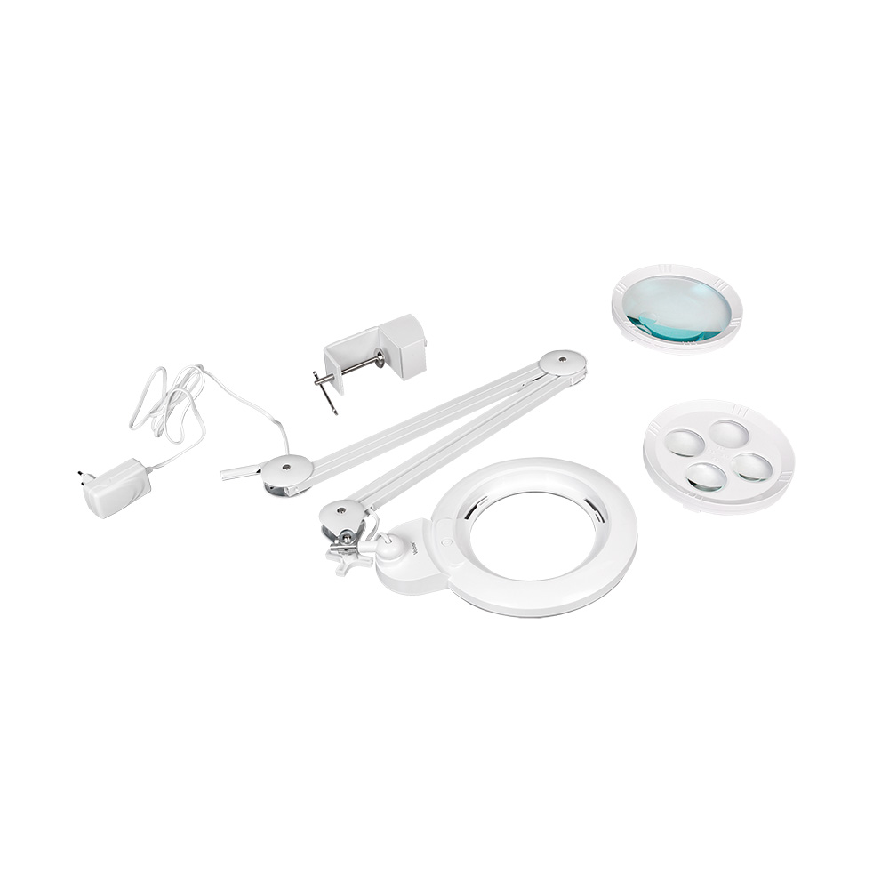 Все линзы лупы-лампы изготовлены из оптического стекла. Благодаря этому, создаваемое изображение абсолютно лишено окраски и искажения по краям поля зрения. Материал обойм — прочный противоударный ABS пластик.