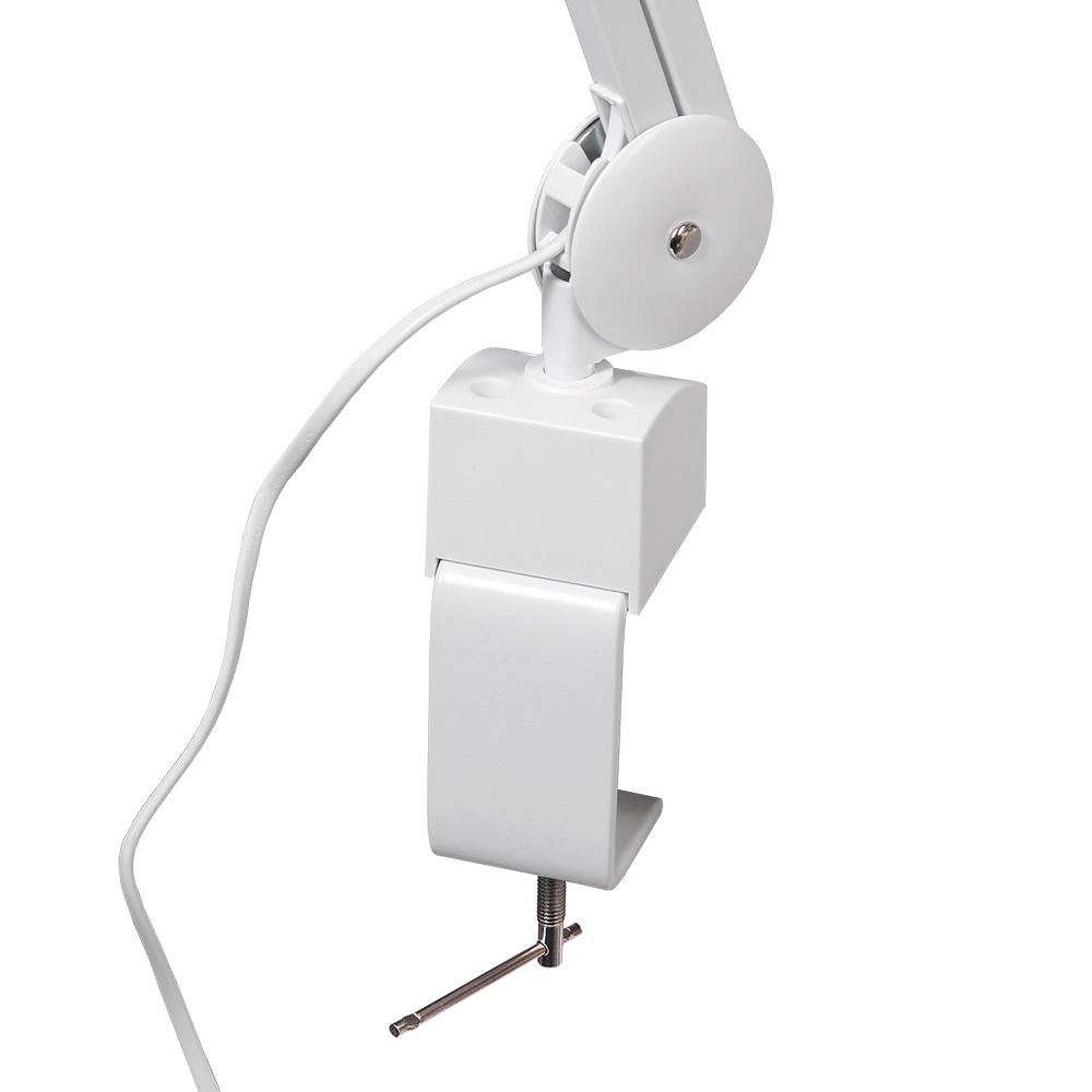 27116Лупа-лампа Veber 8608D LED Bi-color со сменными линзами. 120 SMD светодиодов, мощность 12 Вт. Регулировка яркости и цветовой температуры. Питание от сети 220 В. 2 обоймы с линзами оптической силой 3, 8, 10, 12, 15 и 20 D. Крепление к столу струбциной с пантографом.