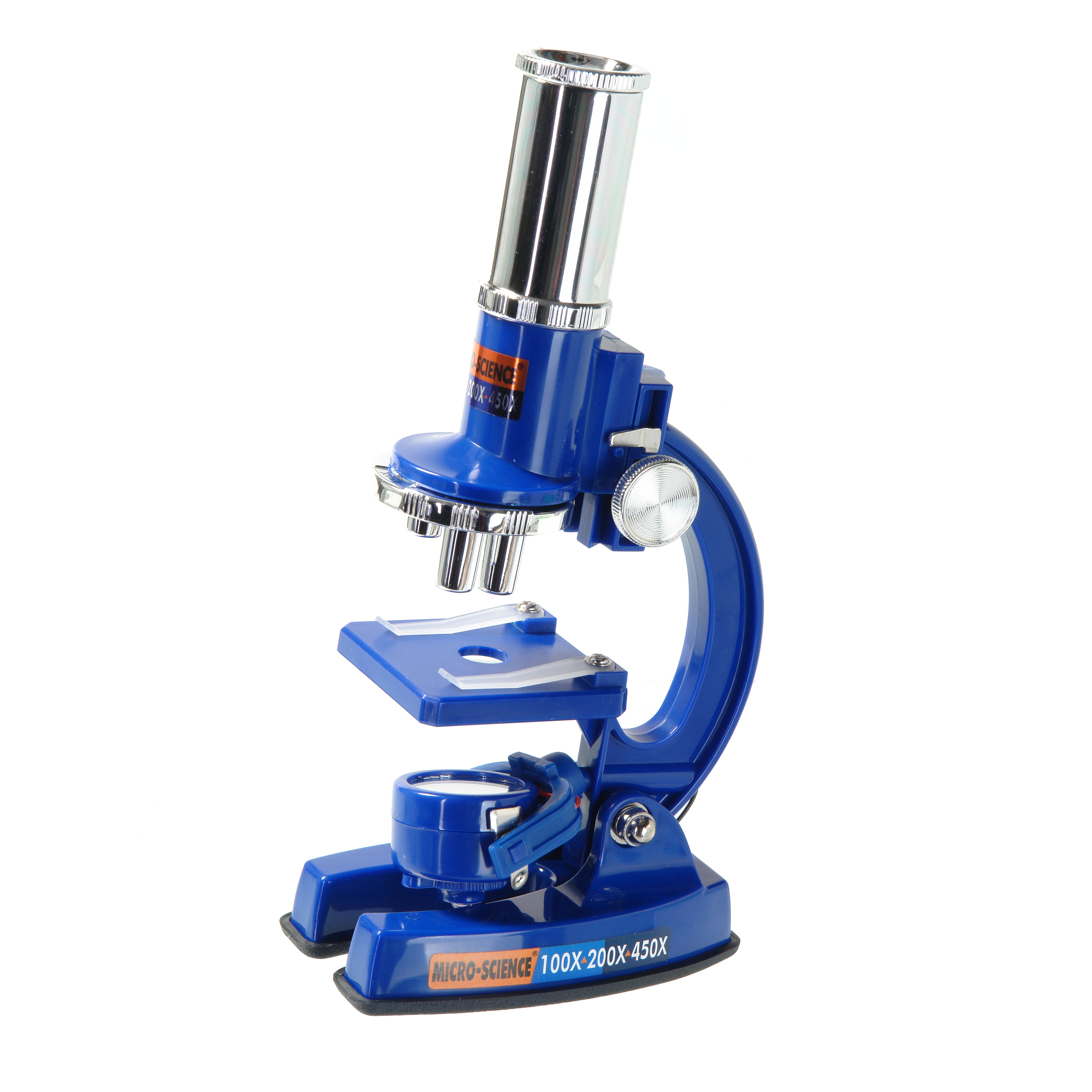 25607Монокуляр. Увеличение 100х-450х. 3 объектива. Источник света – лампа, зеркало. Подготовленный микропрепарат в комплекте. 4 чистых предметных и покровных стекла со стикерами.
