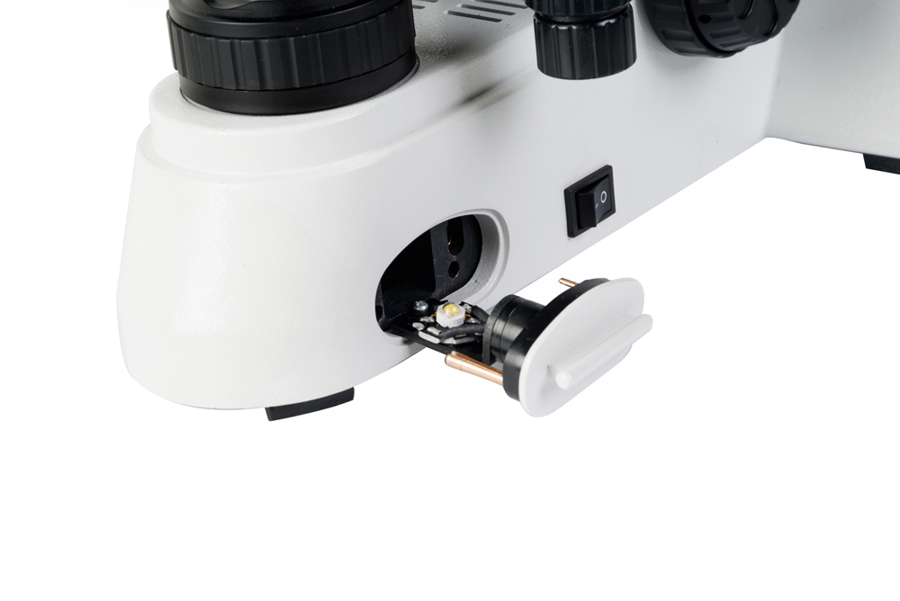Освещение Кёлера, используемое в микроскопе, позволяет в полной мере реализовывать разрешающую способность объективов, приближая общее разрешение микроскопа к дифракционному пределу. Осветительная система проходящего света состоит из коллектора с полевой диафрагмой, центрируемого конденсора Аббе и светодиода белого спектра с регулируемой яркостью. Конденсор снабжен шкалой с маркировкой числовых апертур используемых объективов. В конденсоре имеется слот для установки дополнительных слайдеров темного поля и анализатора для работы в поляризованном свете. Блок питания осветителя встроен в основание микроскопа.