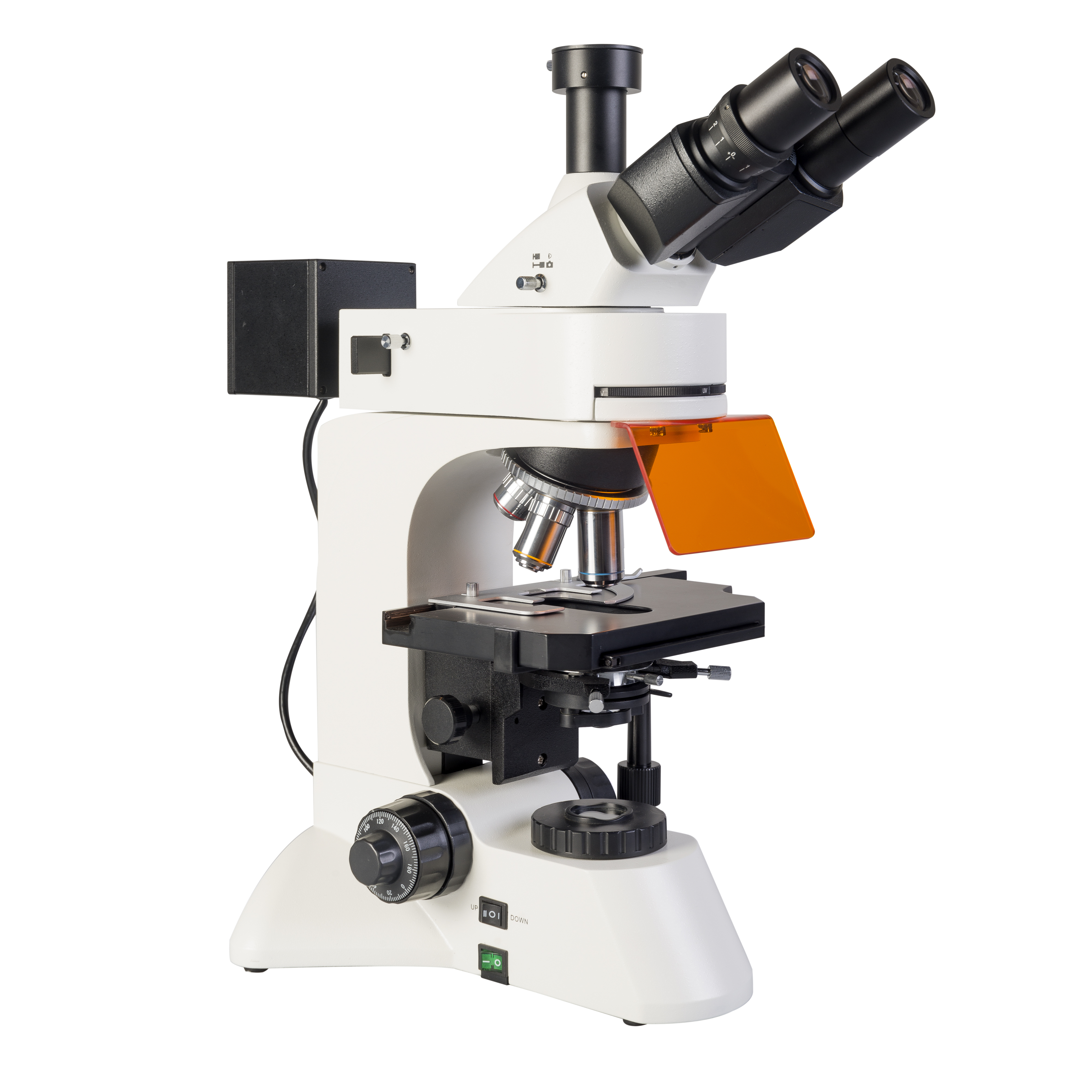 20330Тринокулярный микроскоп для исследований в 4 спектральных диапазонах люминесценции и по методу светлого поля в проходящем и отраженном свете. Увеличение микроскопа в 40х-1000х. Исследования методами темного поля и фазового контраста с дополнительными устройствами. Револьверное устройство на 5 объективов.