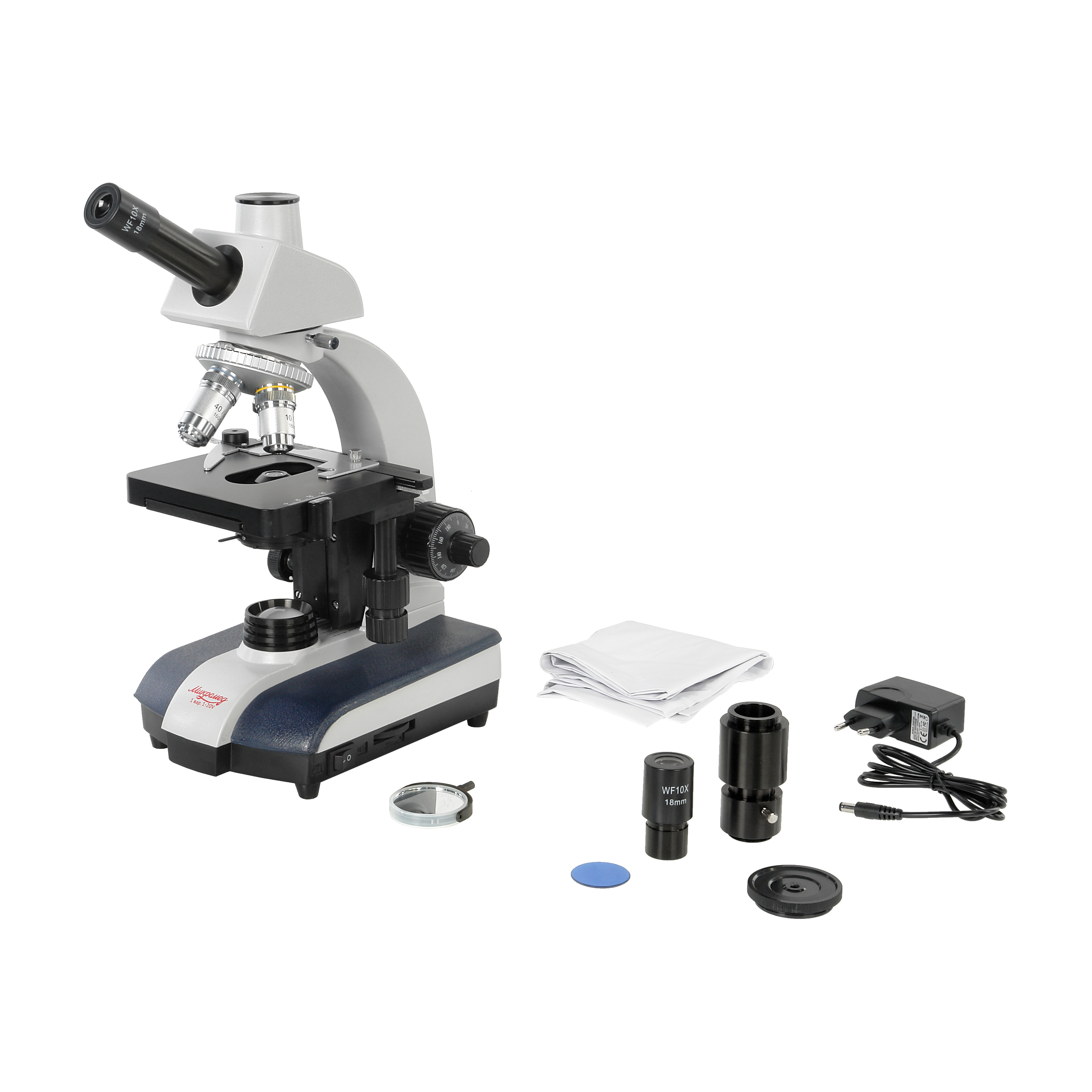 Увеличение микроскопа с комплектным окуляром WF 10х/18 составляет от 40х до 1000х. Для микроскопа доступны дополнительные окуляры WF 5х/18, WF 12.5х/15, WF 16х/15, WF 20х/11 и окуляр WF 10х/18 со шкалой / сеткой. С дополнительными окулярами увеличение составляет от 20х до 2000х.