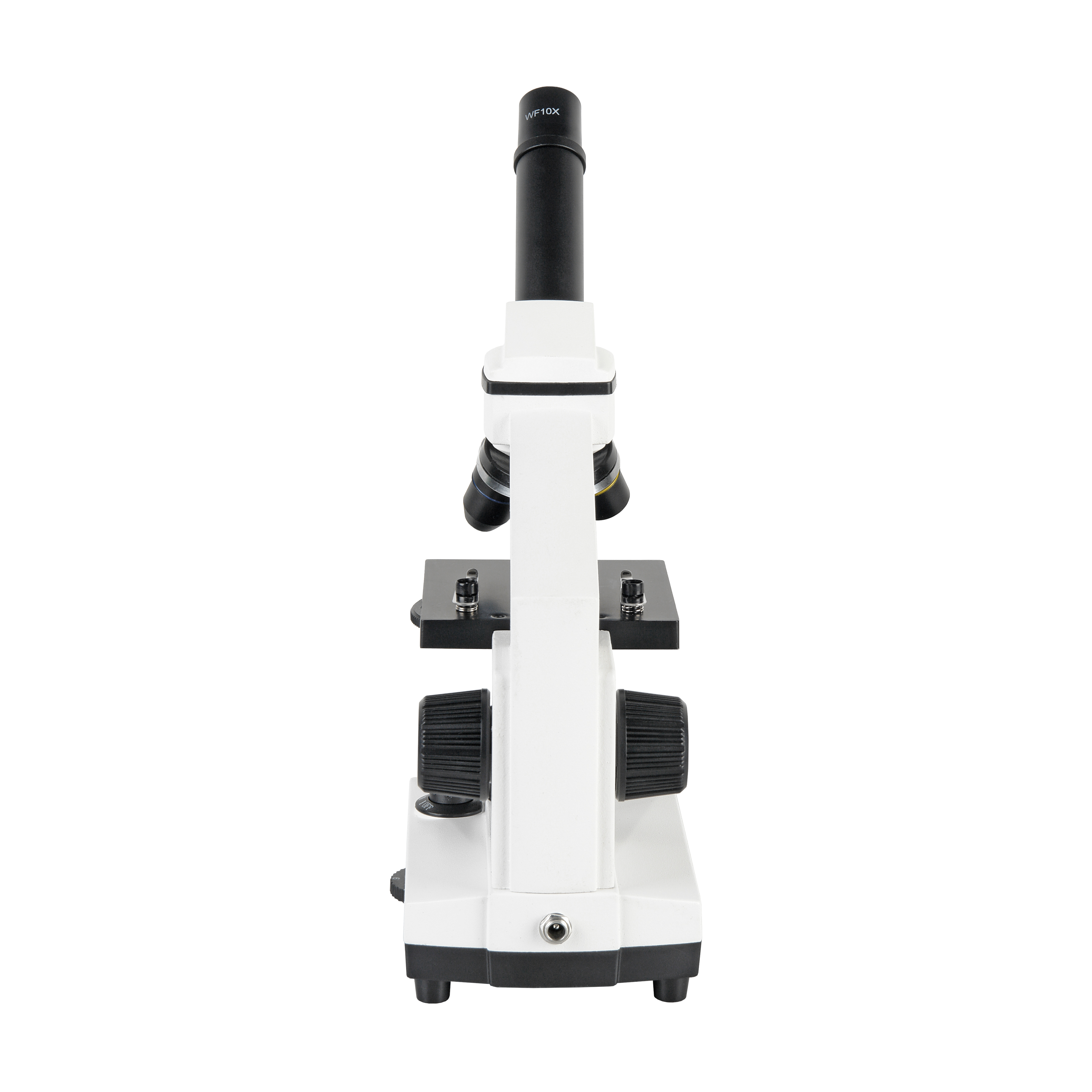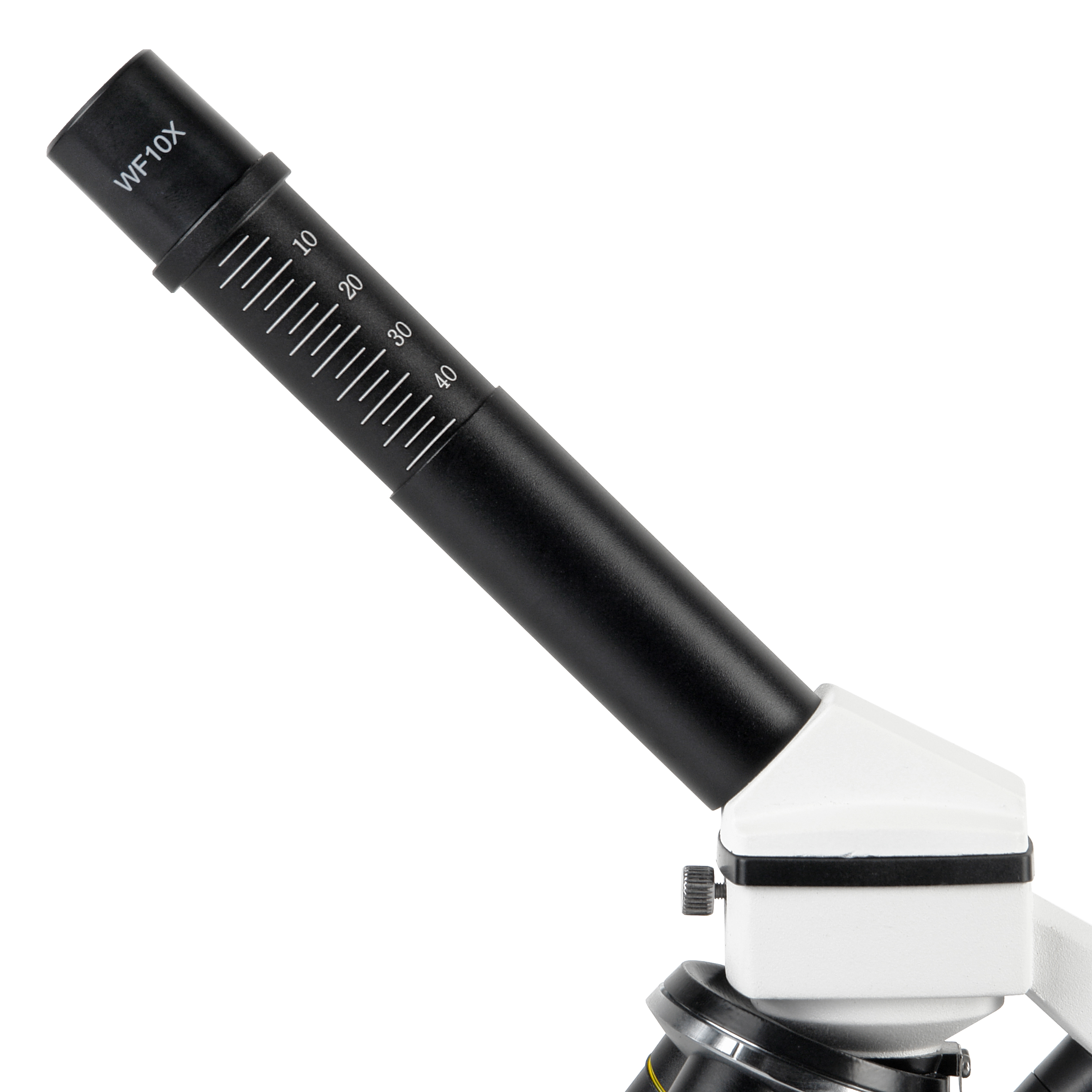 В комплекте микроскопа резкие ахроматические объективы 4x/0.10, 10x/0.25 и 40x/0.65, позволяющие наблюдать детальные и яркие изображения. Объектив 40x/0.65 имеет конструкцию оправы с подпружиненным оптическим блоком, что препятствует повреждению объектива и изучаемого образца. Все оптические элементы микроскопа - объективы и окуляры изготовлены из оптических стекол высокого качества и имеют просветляющее покрытие. Объективы микроскопа установлены на револьверном устройстве, что позволяет наблюдателю быстро переходить к исследованиям с различными увеличениями.