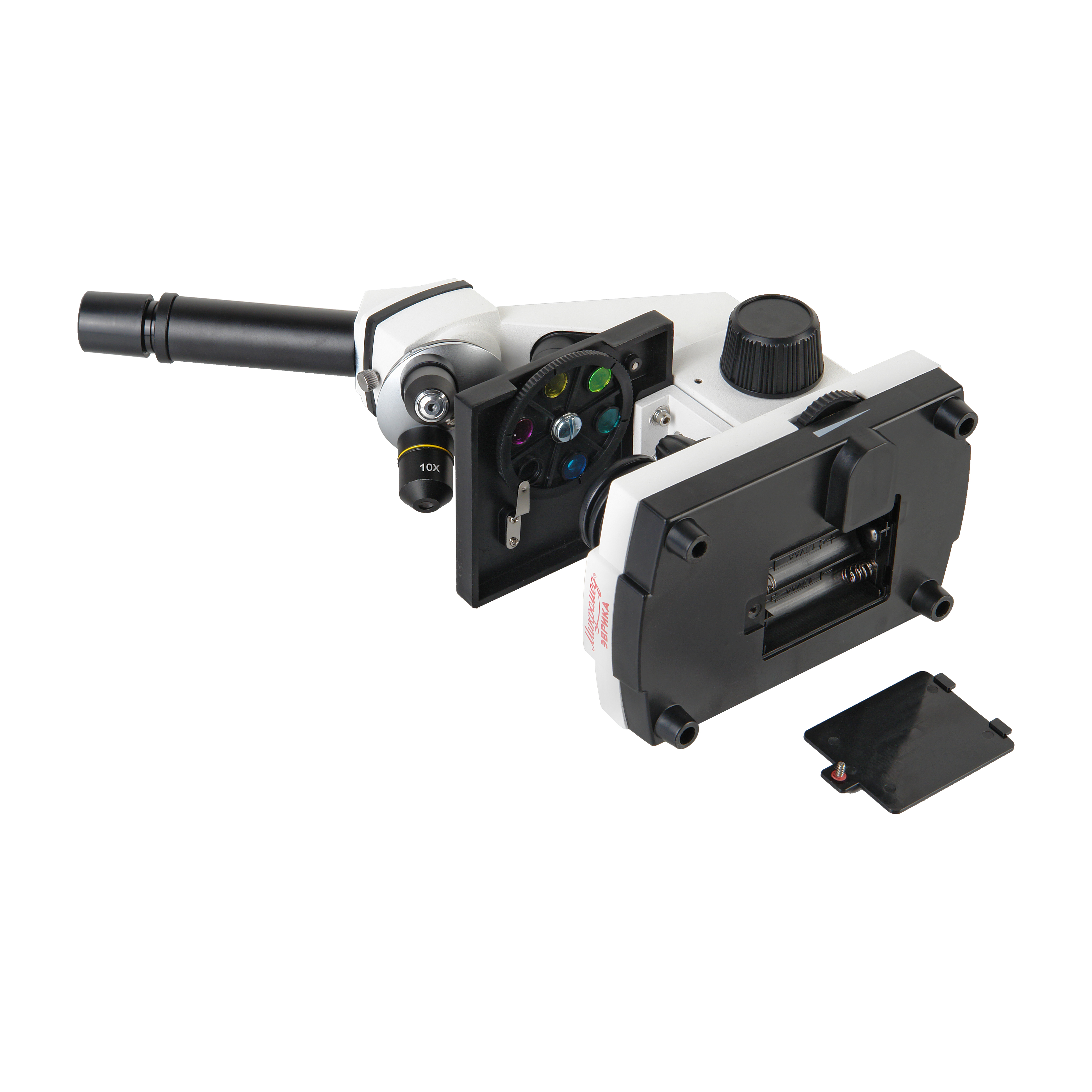22670Монокулярный учебный микроскоп с камерой 2.0 Мр для наблюдения и записи файлов в проходящем и отраженном свете. В комплекте три объектива с ахроматической коррекцией. Два осветителя на светодиодах. Питание от батарей или от сети.