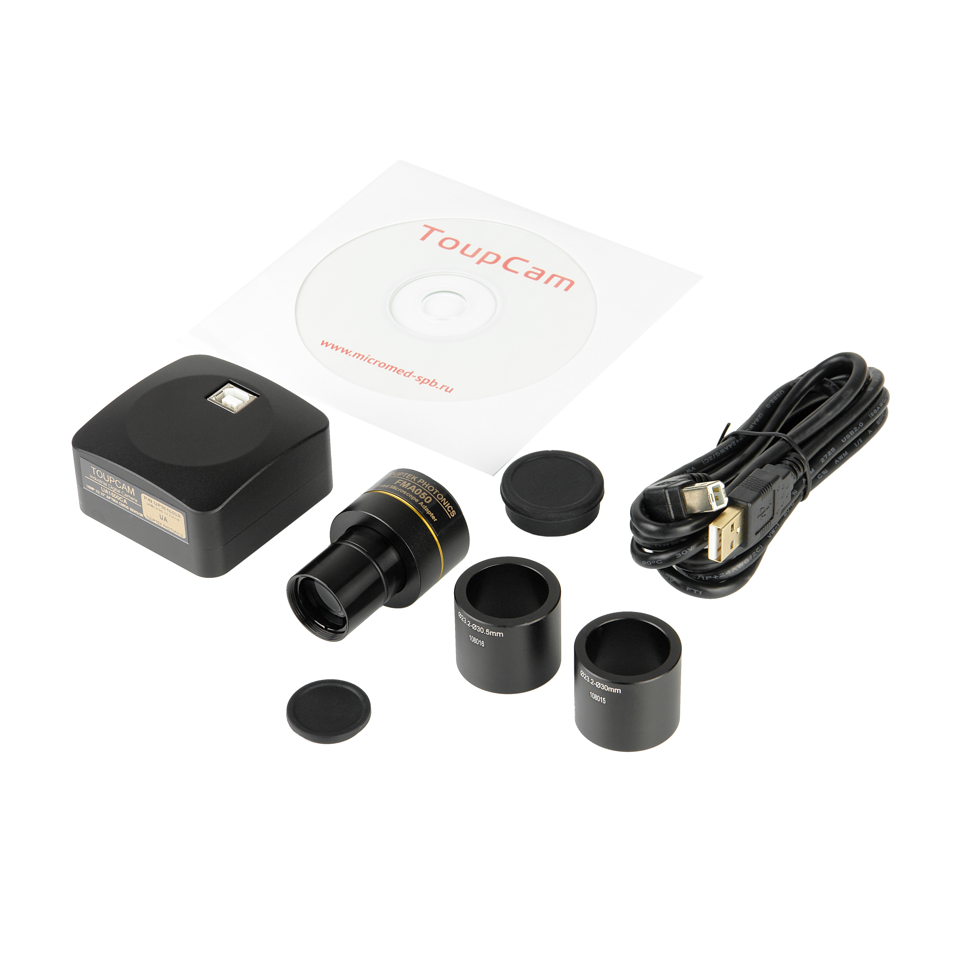 В комплект к камере входят переходники 23.2/30.0 и 23.2/30.5, благодаря этому не возникнет никаких трудностей при установке камеры на микроскопы плоского поля и стереомикроскопы с тубусами различных диаметров. Посредством комплектного адаптера 0.5х камера устанавливается на микроскопы с тубусом 23.2 мм.