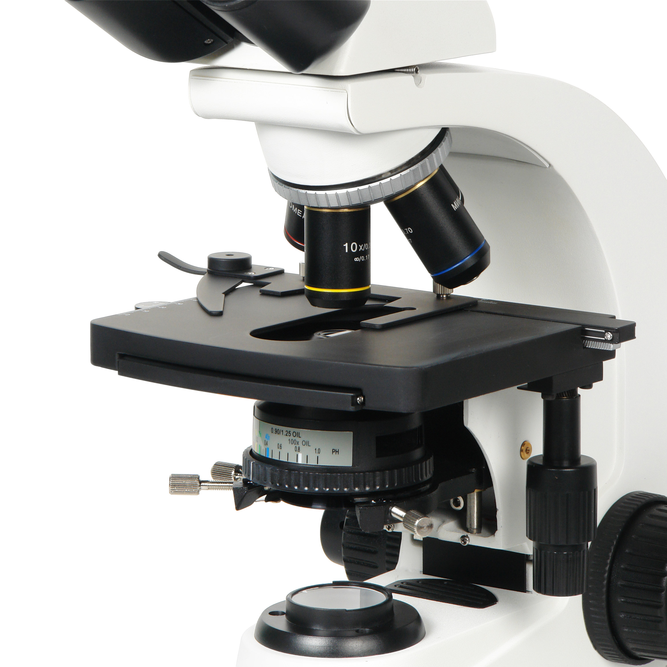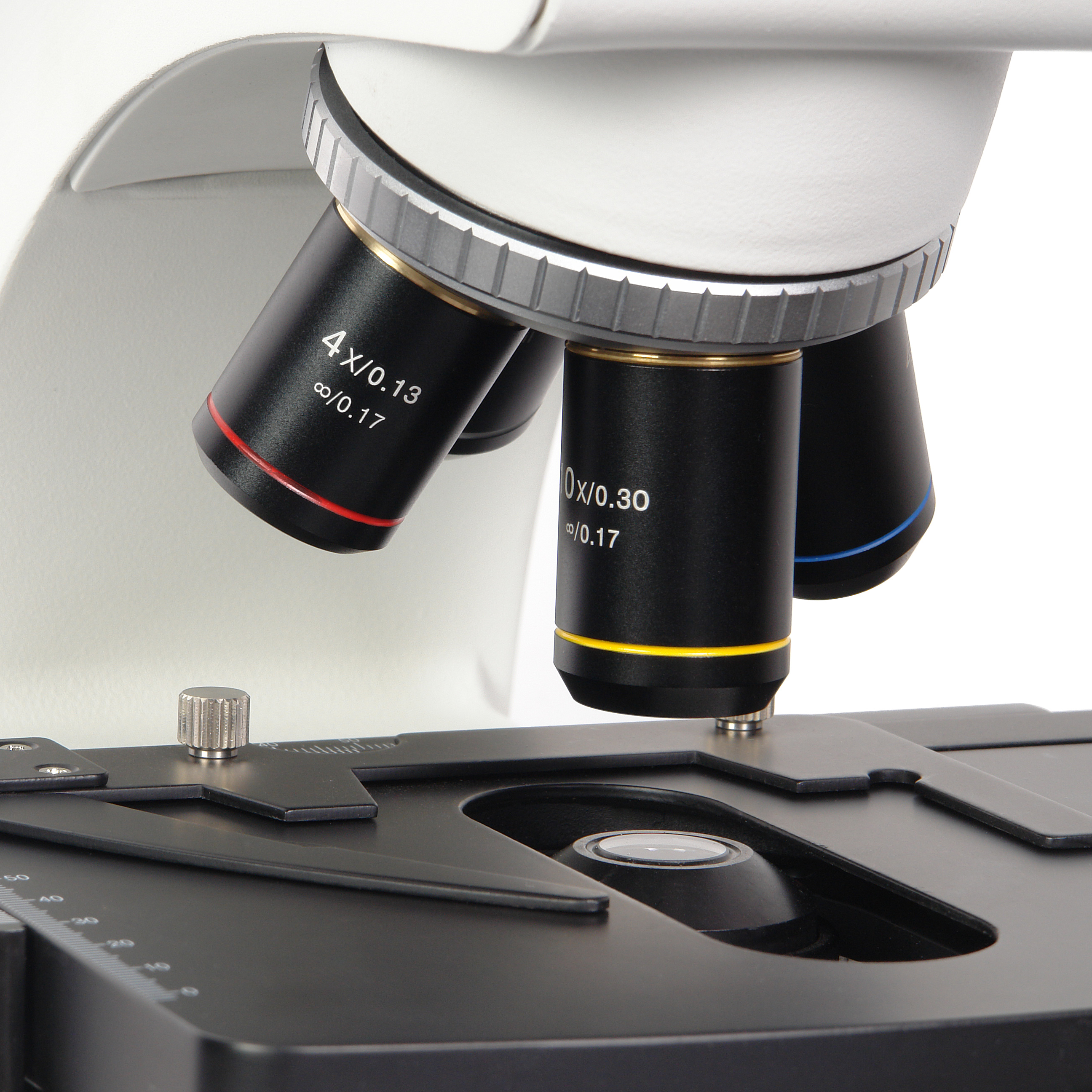 В комплекте микроскопа объективы с коррекцией на бесконечность 4x/0.13, 10x/0.30, 40x/0.70 и иммерсионный объектив 100x/1.25 oil. По дополнительному заказу может быть приобретен объектив 60х/0.80. Высокое оптическое качество объективов обеспечивает информативность и комфорт при исследованиях и отличное качество записываемых изображений. Объективы стандартизованы по DIN и имеют парфокальную высоту 45 мм.