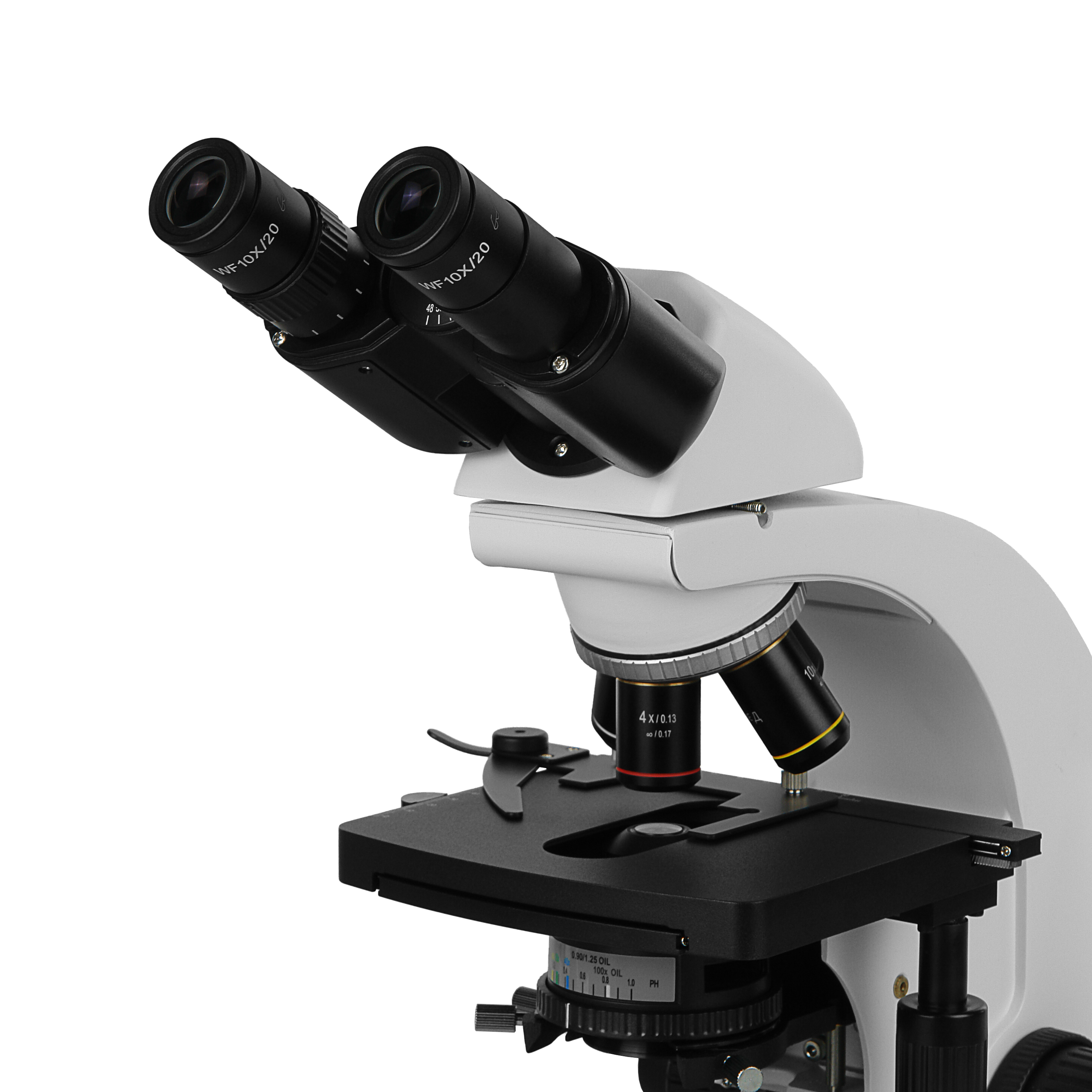 В комплекте микроскопа объективы с коррекцией на бесконечность 4x/0.13, 10x/0.30, 40x/0.70 и иммерсионный объектив 100x/1.25 oil. По дополнительному заказу может быть приобретен объектив 60х/0.80. Высокое оптическое качество объективов обеспечивает информативность и комфорт при исследованиях и отличное качество записываемых изображений. Объективы стандартизованы по DIN и имеют парфокальную высоту 45 мм.