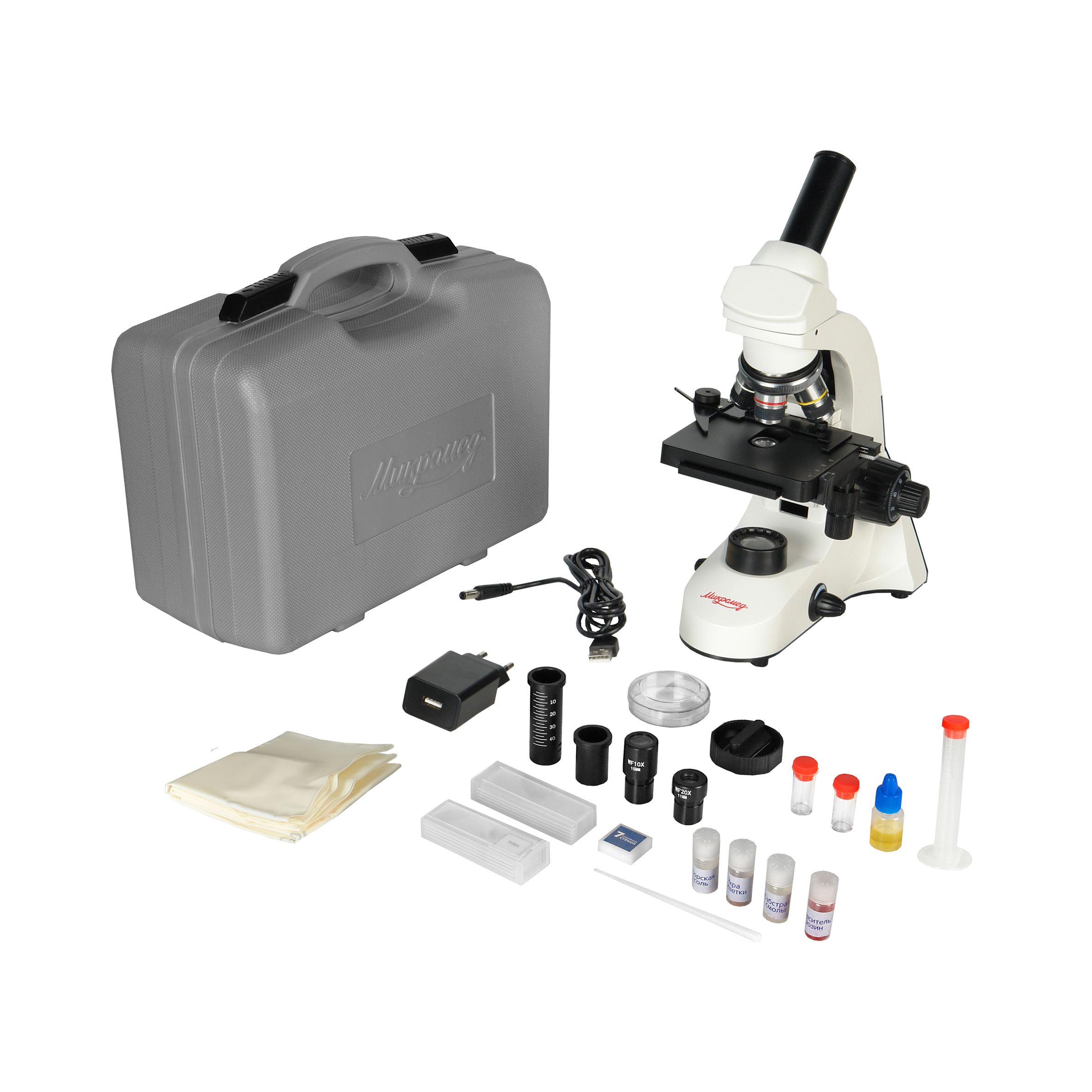 Микроскоп применяется для учебного процесса и проведения лабораторных работ по биологии, экологии, физике и химии в учебных кабинетах школ и лицеев. Также микроскоп может быть использован для самостоятельных занятий в домашних условиях. Встроенные осветители проходящего и отраженного света позволяют исследовать как прозрачные, так и непрозрачные образцы. На микроскопе можно изучать срезы тканей, мазки, жидкости, минералы, кристаллы, насекомых, растения и многое другое.