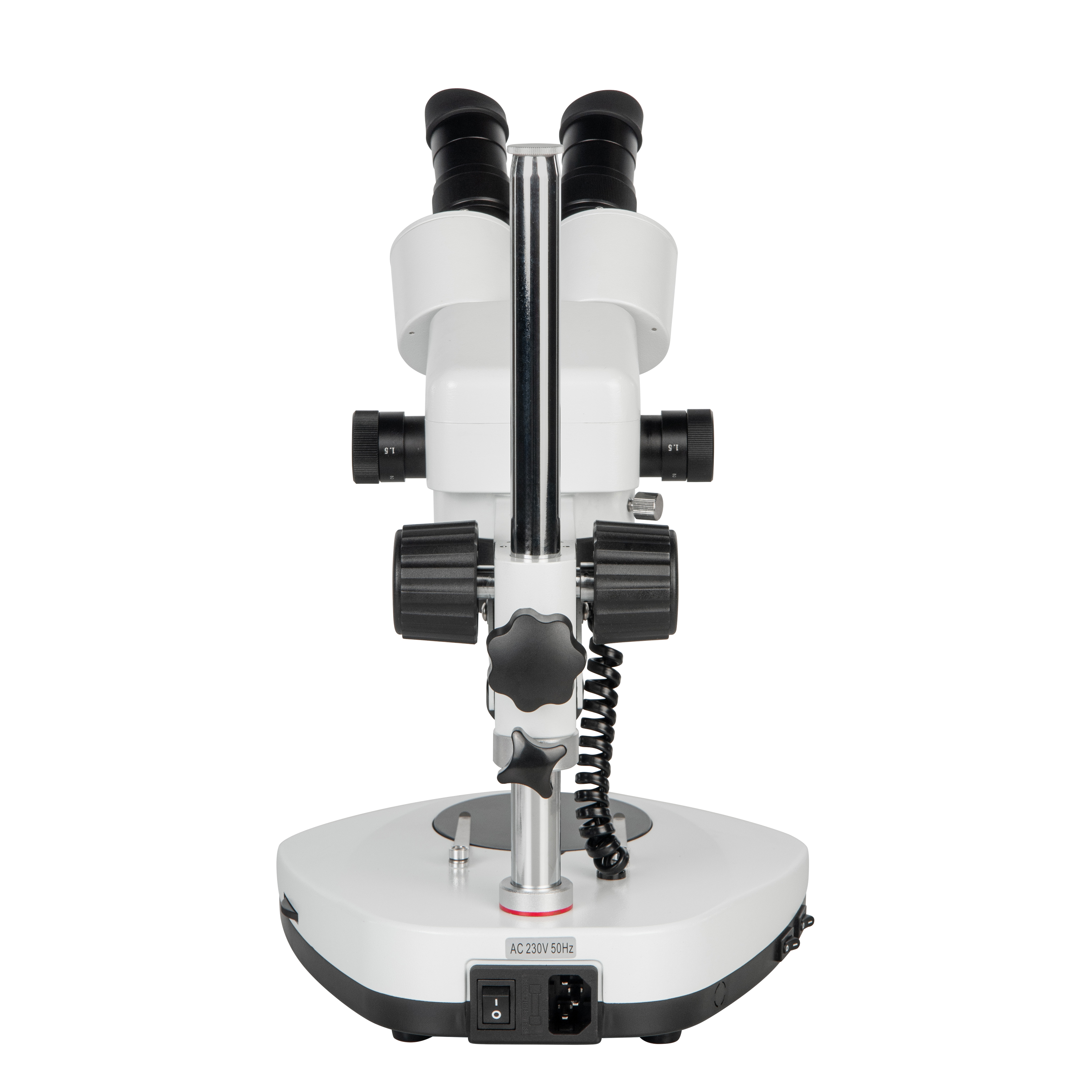 Увеличение микроскопа с окулярами SWF 10х/23, входящими в комплект поставки, составляет от 10х до 40х. Для микроскопа выпускаются окуляры WF 5х/20, WF 15х/15, WF 20х/10. С этими окулярами общий диапазон увеличений микроскопа составит от 5х до 80х. Для микроскопа также доступен окуляр WF10х/22 со шкалой, позволяющий проводить измерение линейных размеров деталей объектов.