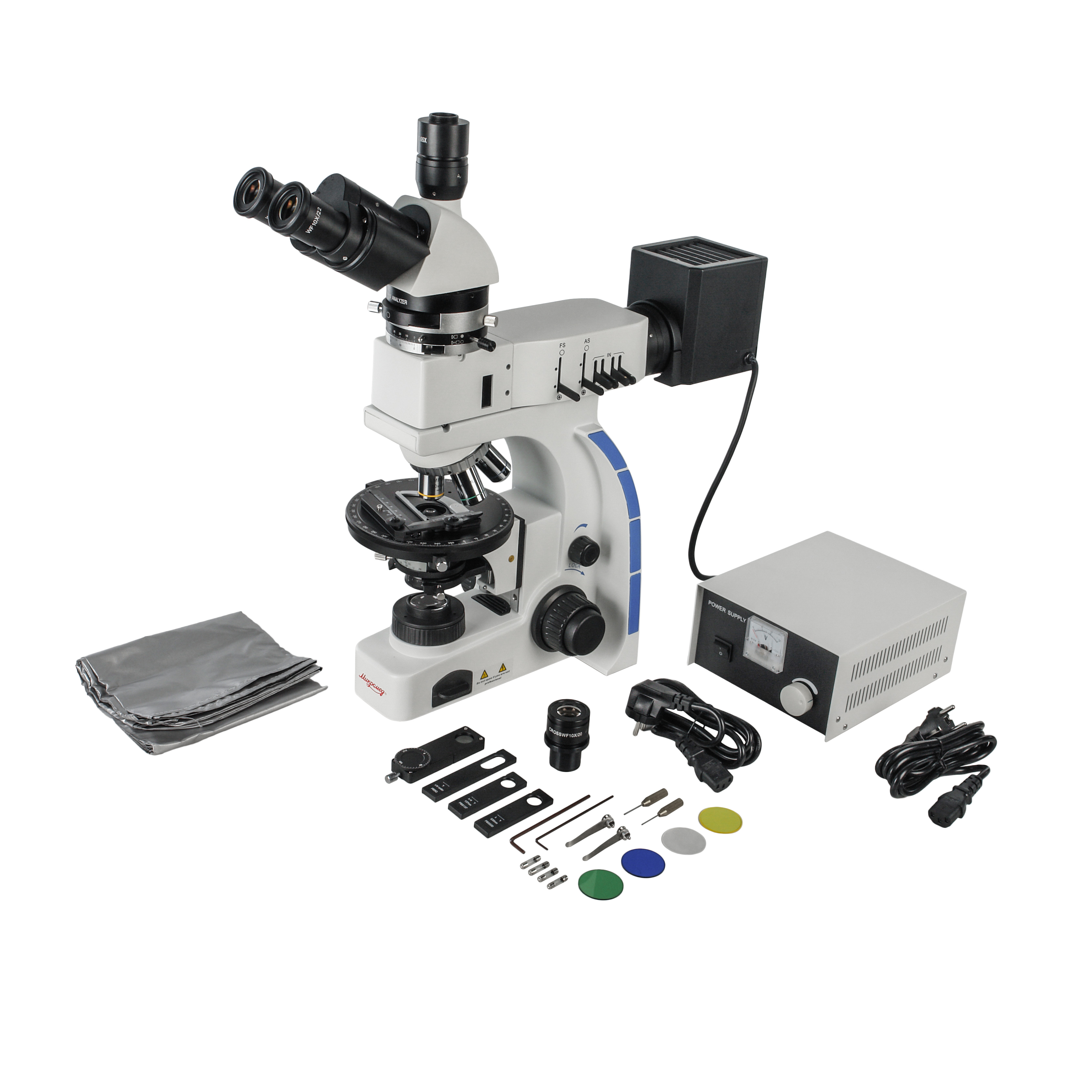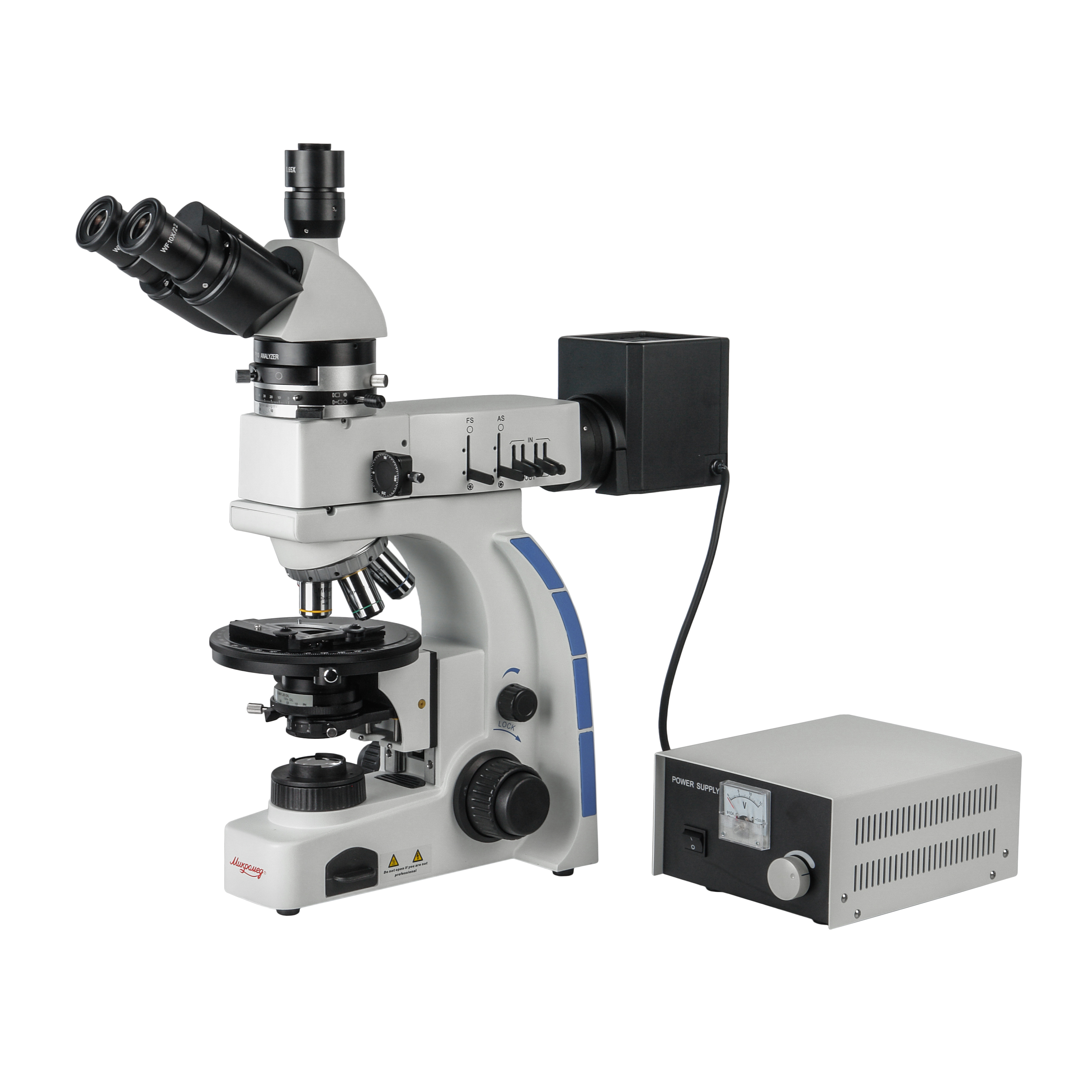 Для работы с поляризованным светом в системе используется выдвижной поляризатор с вращаемой на 360⁰ плоскостью поляризации, при работе с обычным светом поляризатор выдвигается из хода лучей. Анализатор установлен в промежуточном тубусе, имеет поворотную на 180⁰ конструкцию и при работе в обычном свете выводится из хода лучей.