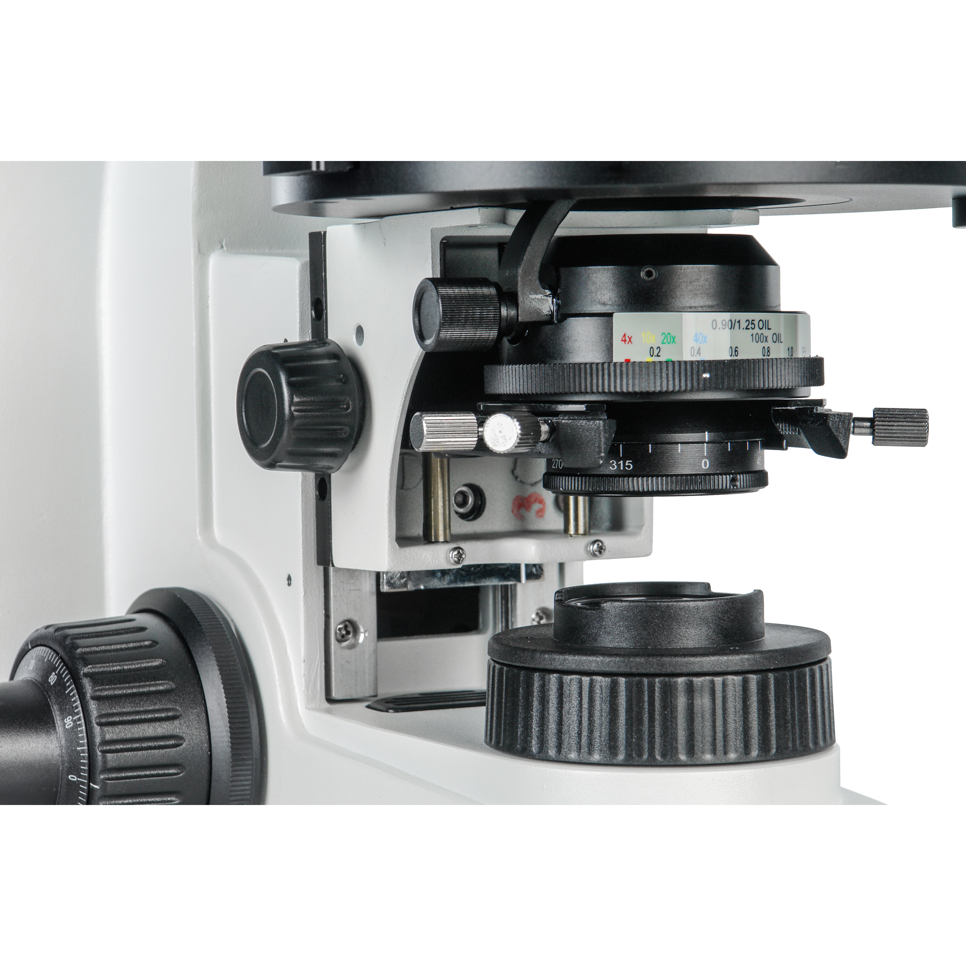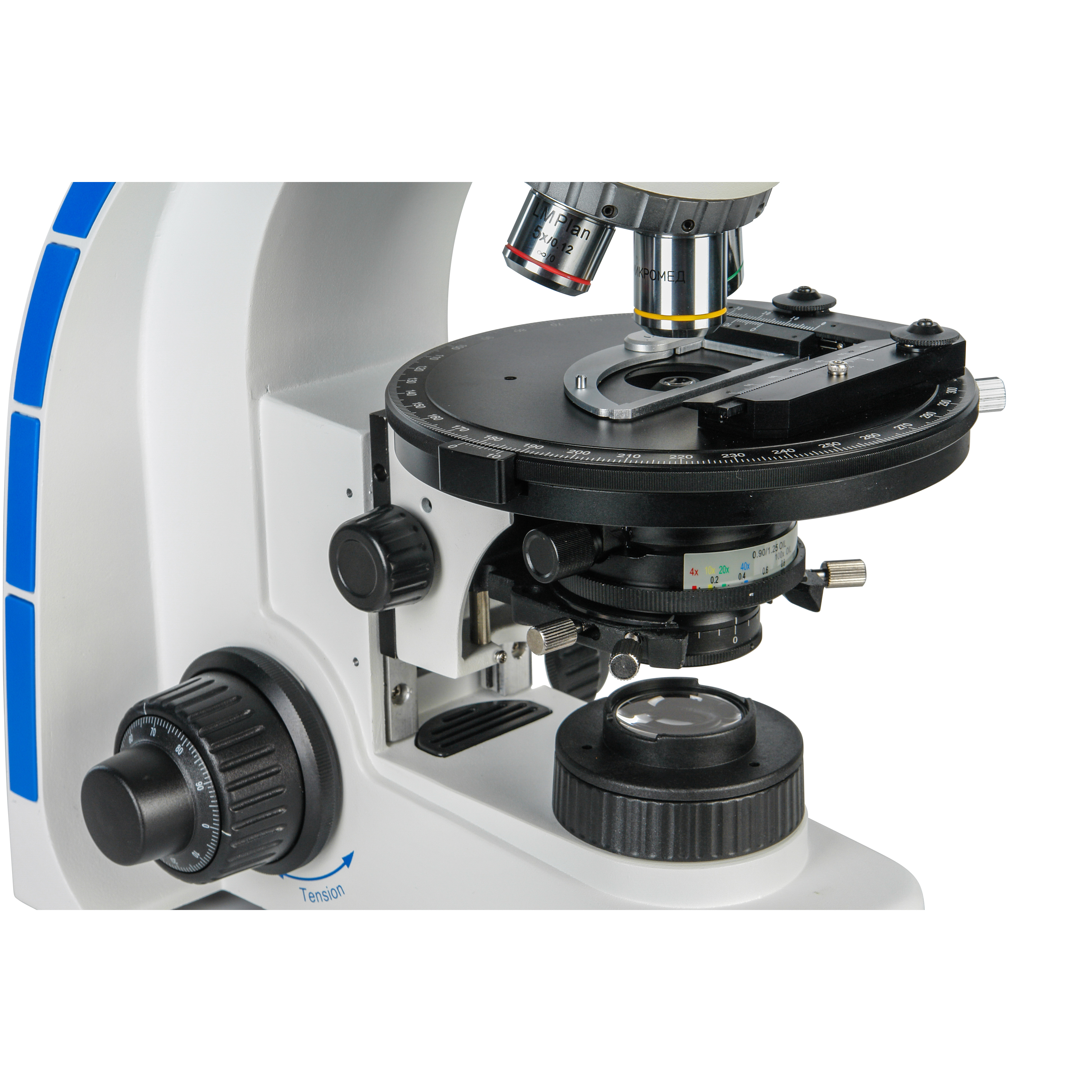 - Конденсор Аббе центрируемый иммерсионный, NА=0.9/1.25 со встроенным поворотным на 360⁰ поляризатором (установлен на штативе)