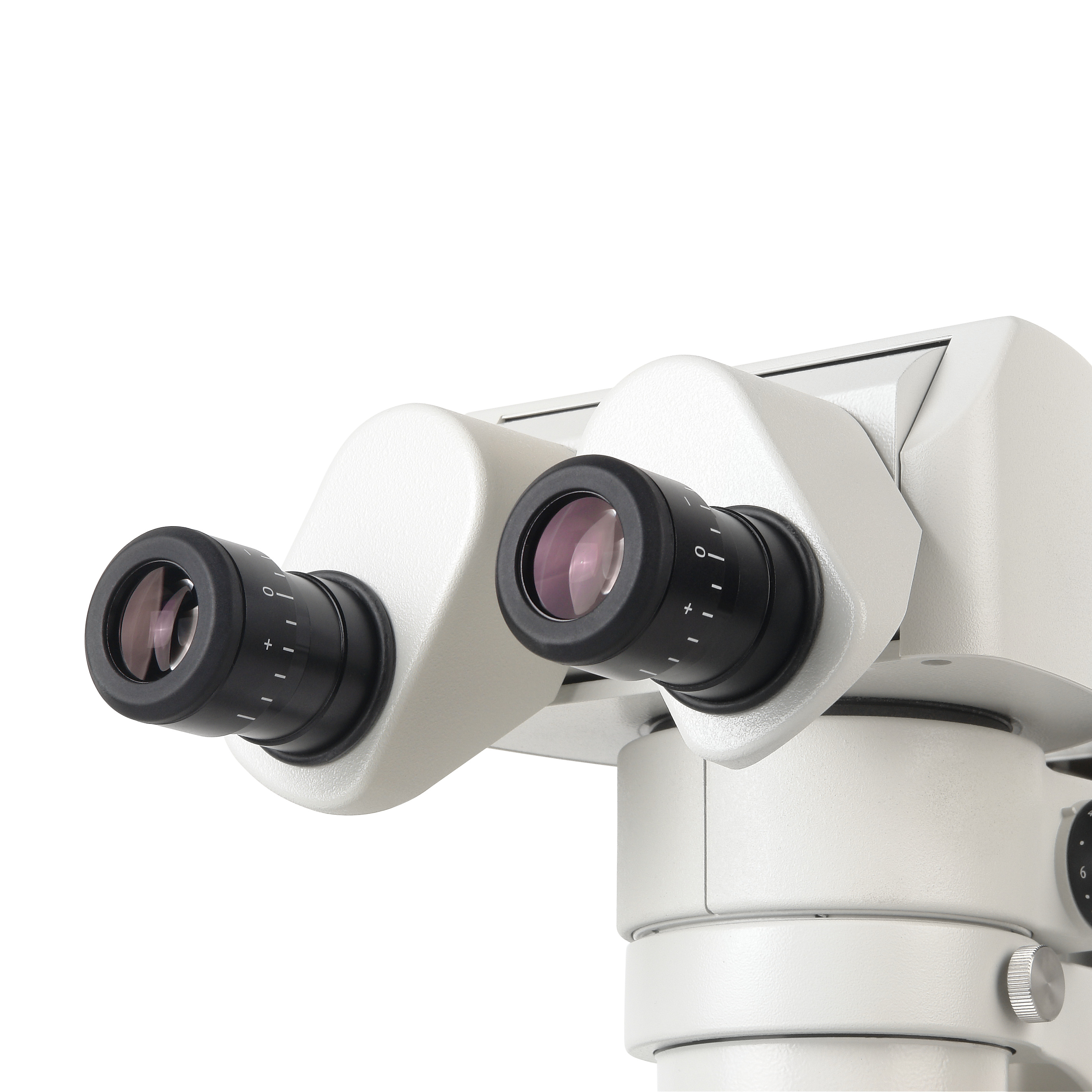 Бинокулярная визуальная насадка микроскопа специальной конструкции с окулярными тубусами переменного угла наклона. Наблюдатель может отрегулировать угол в пределах от 0 до 35 градусов для настройки комфортного положения при работе с учетом собственных анатомических особенностей. В комплекте микроскопа окуляры WF10х/24 с вынесенным зрачком, каждый снабжен механизмом коррекции аметропии ±5 дптр. Межзрачковое расстояние настраивается в пределах от 50 до 76 мм простым раздвижением окулярных тубусов.