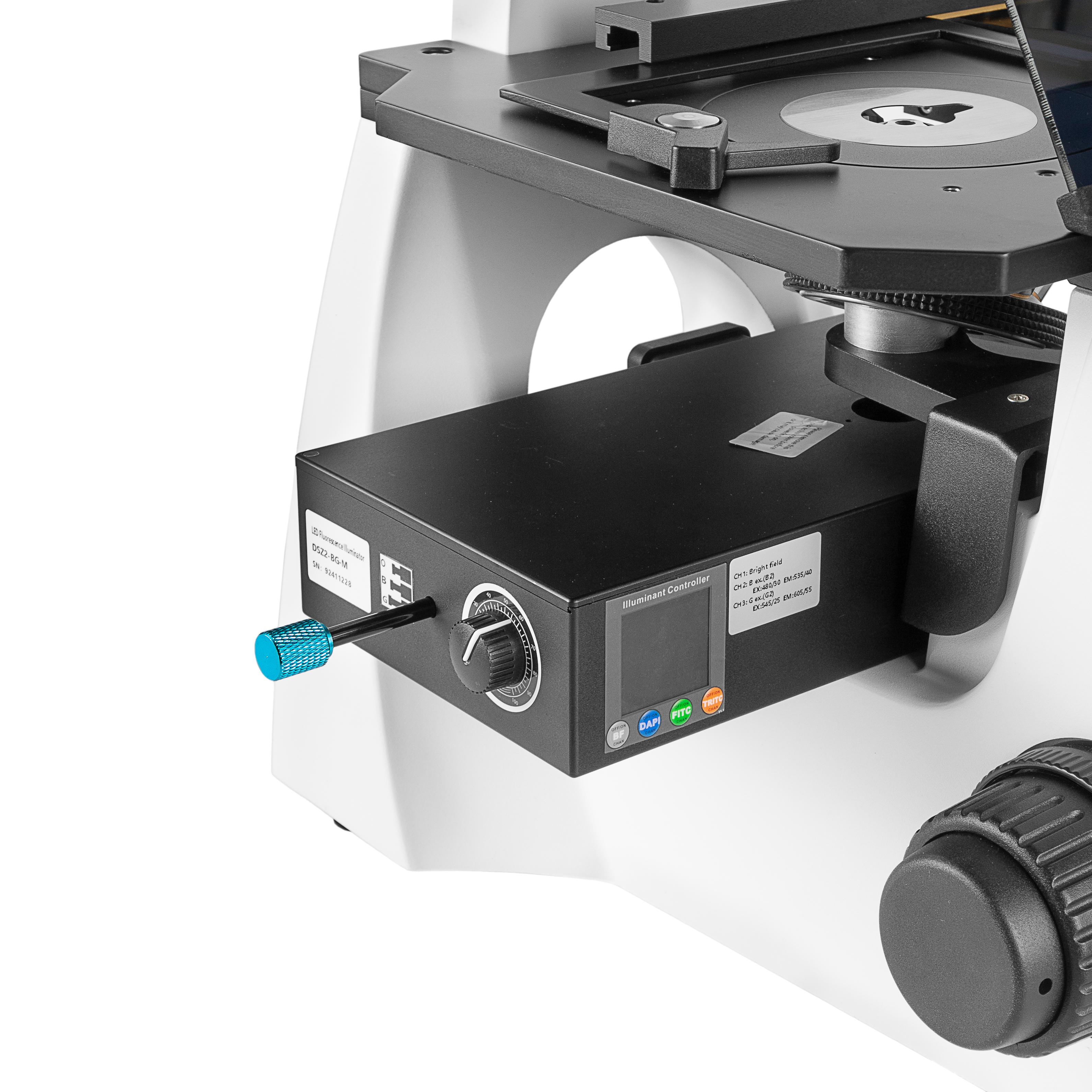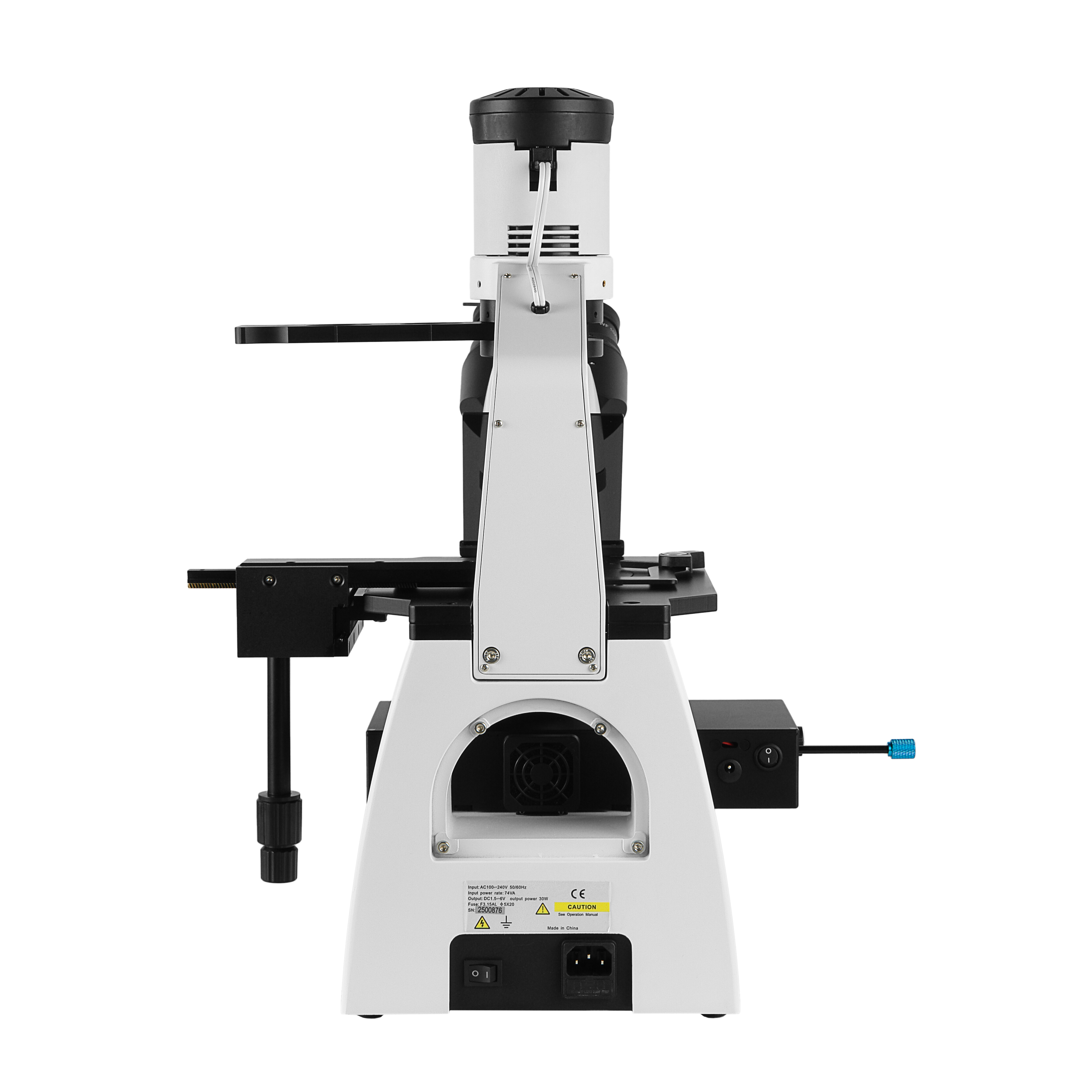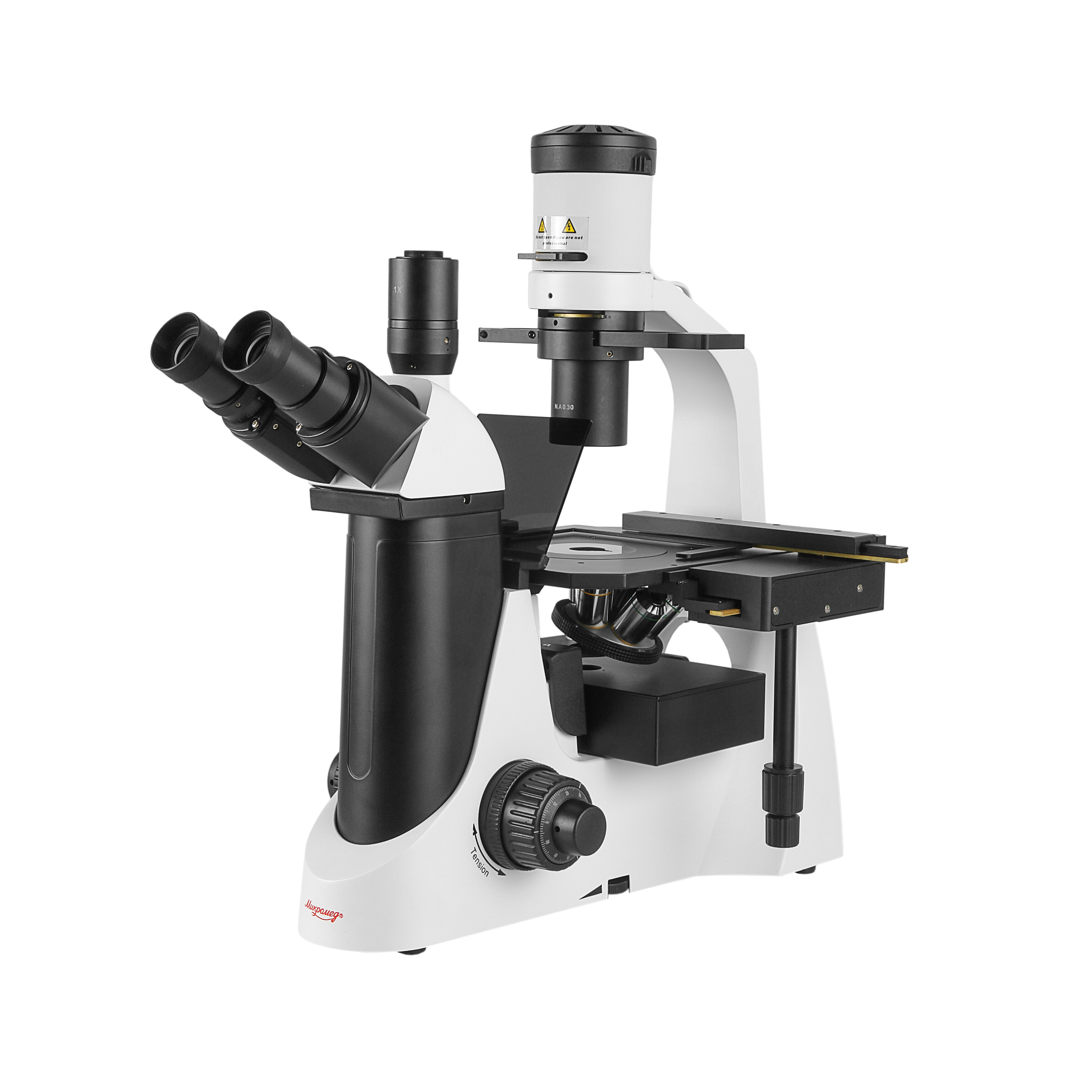 - Инвертированный штатив со встроенным в основание блоком питания, неподвижным предметным столиком, осветителем проходящего света и механизмом фокусировки