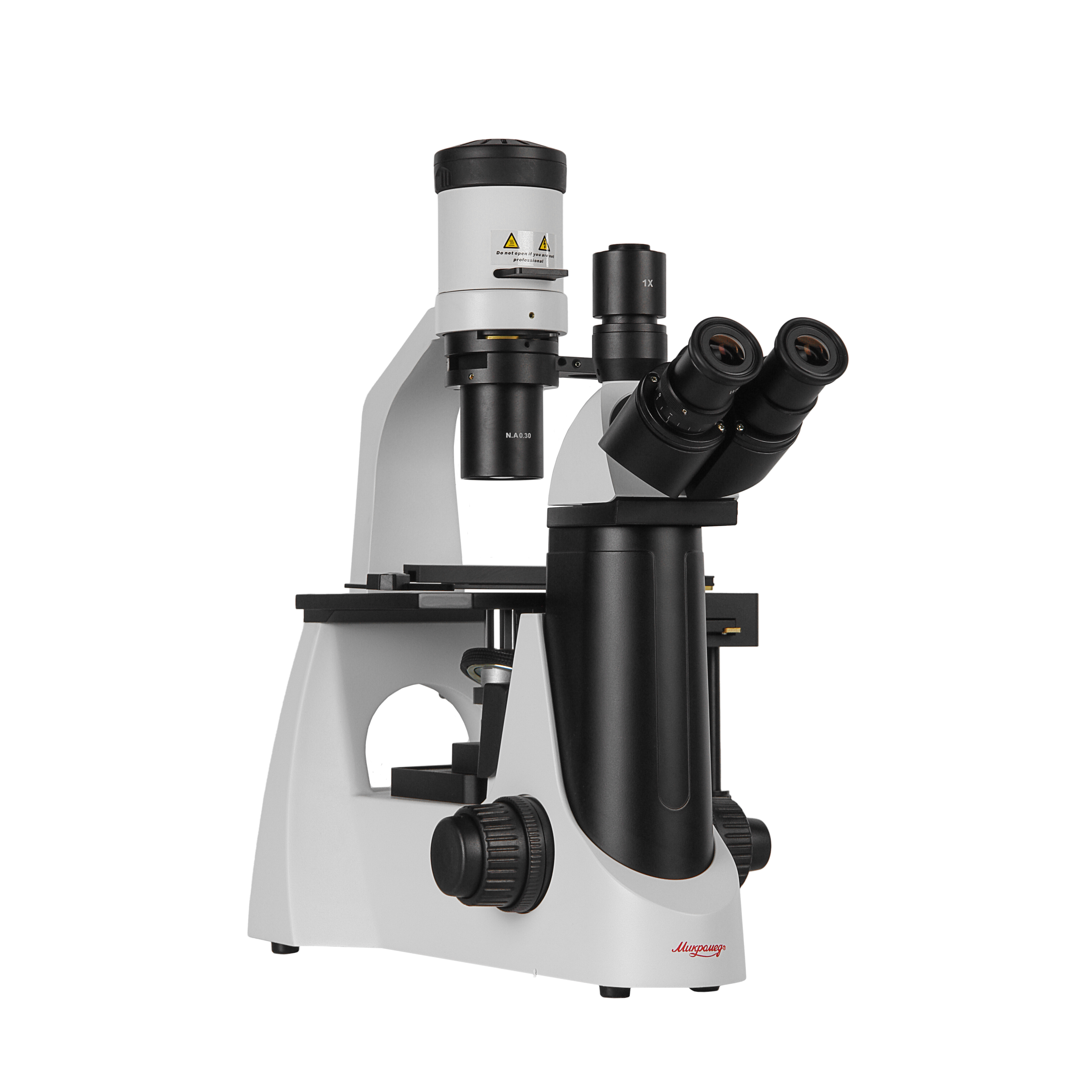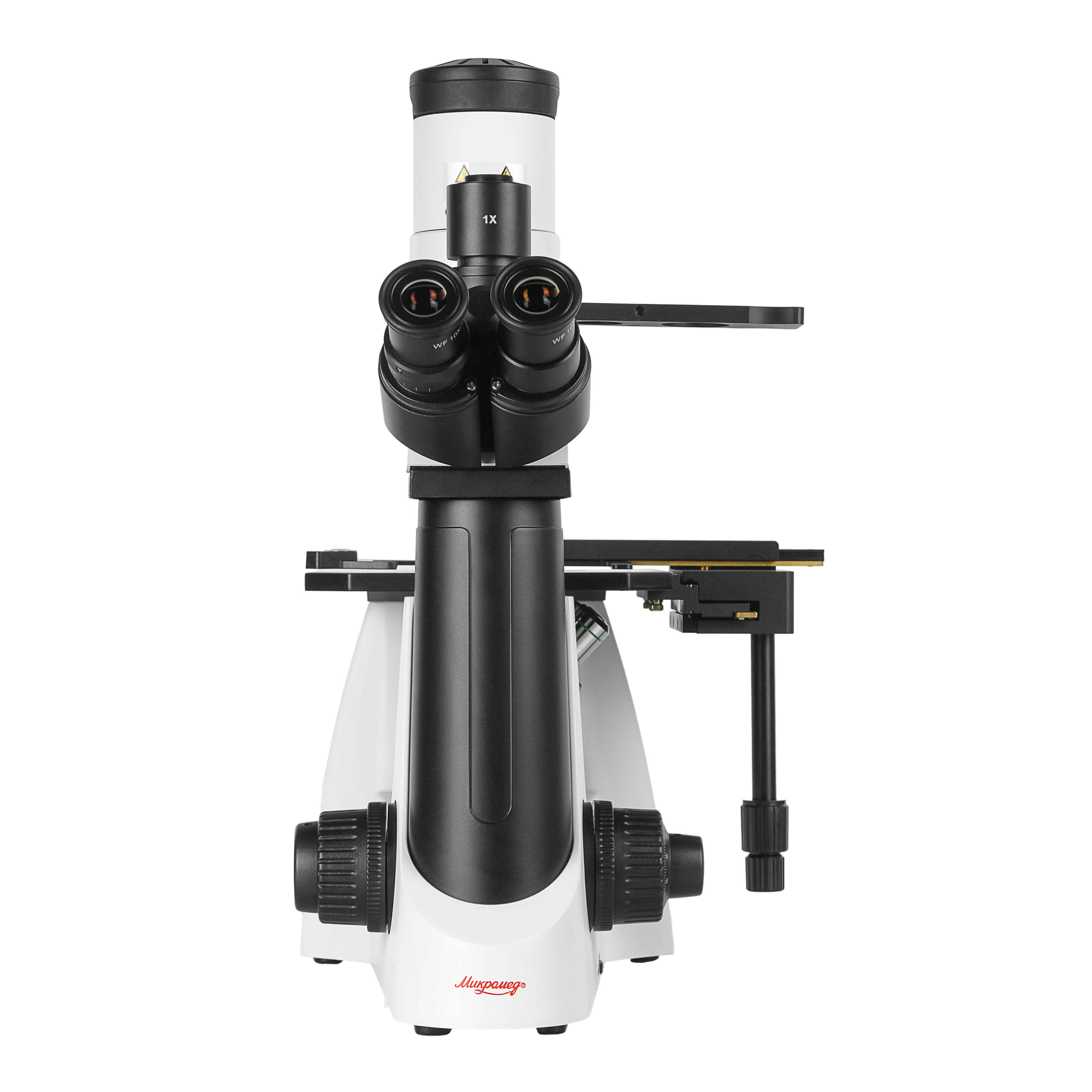 - Инвертированный штатив со встроенным в основание блоком питания, неподвижным предметным столиком, осветителем и механизмом фокусировки