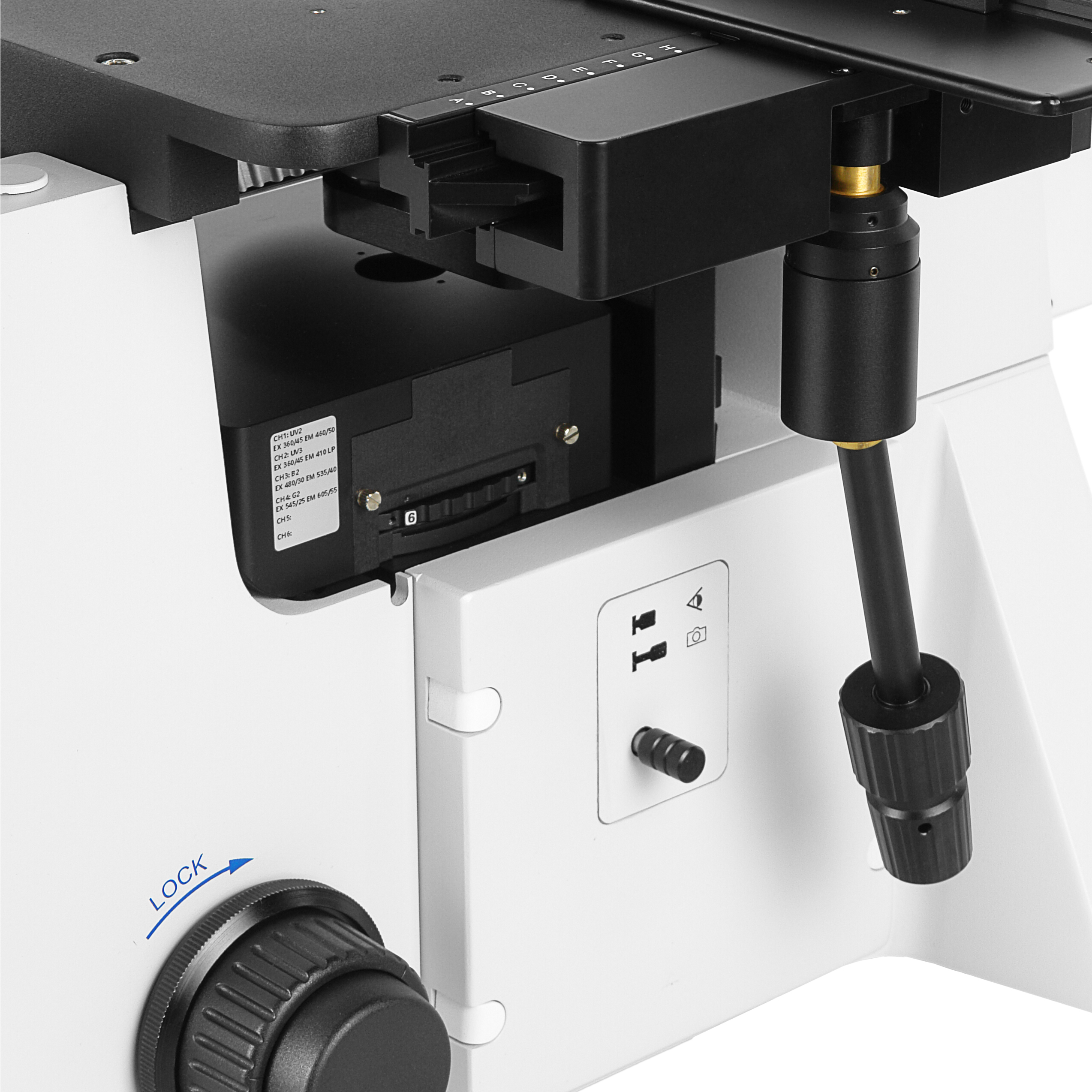 - Инвертированный штатив с предметным столиком, осветителем проходящего света, механизмом фокусировки и оптическим каналом визуализации
