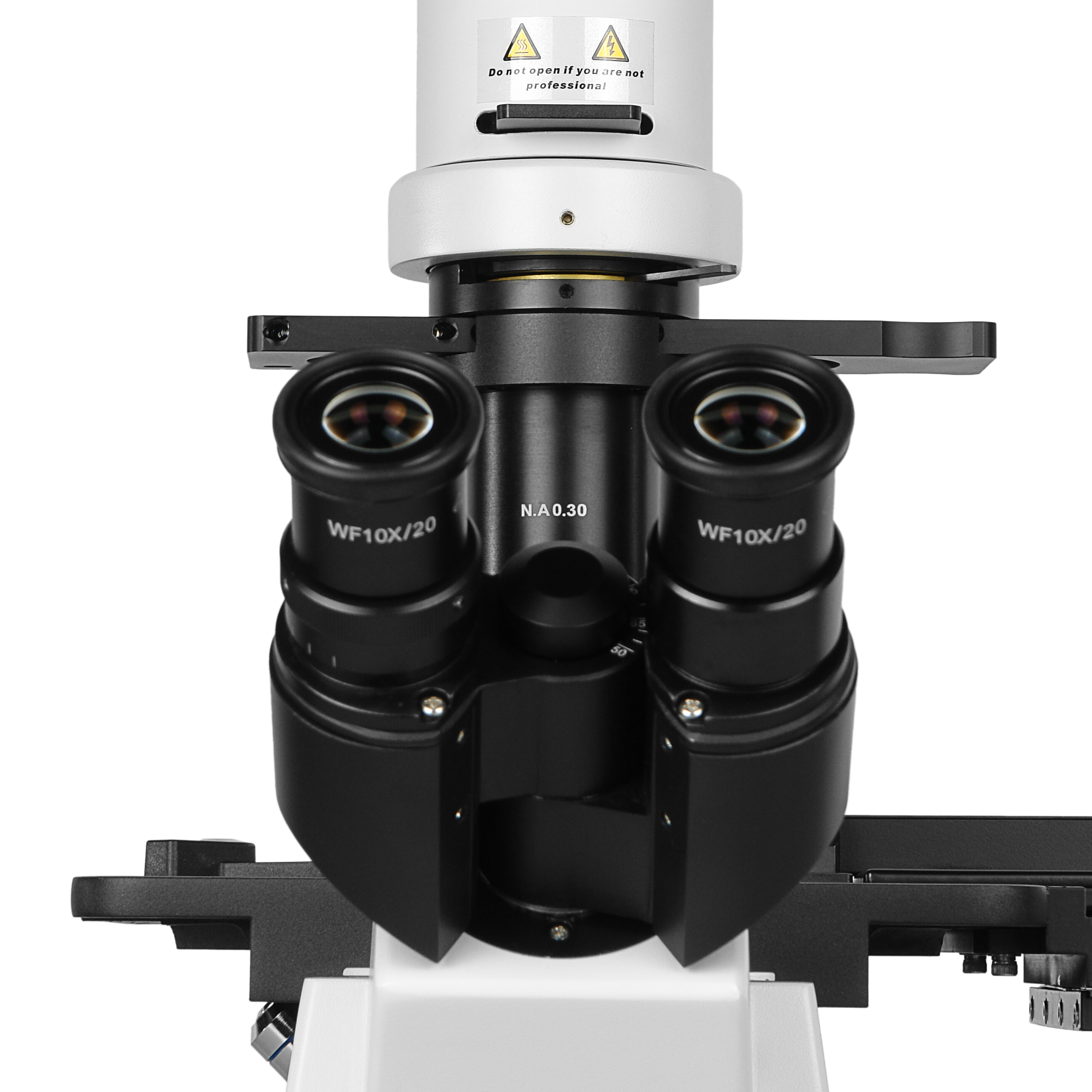 В комплект поставки микроскопа входит адаптер с увеличением 0.5х, позволяющий полноценно использовать большинство окулярных камер с сенсорами размерами от 1/3″ до 1/2.5″. Разделение светового потока между каналом визуализации и окулярами осуществляется оптическим переключателем. В выключенном положении 100% светового потока направляется на окуляры, во включенном положении переключателя свет разделяется между окулярами и каналом визуализации в соотношении 50 - 50.