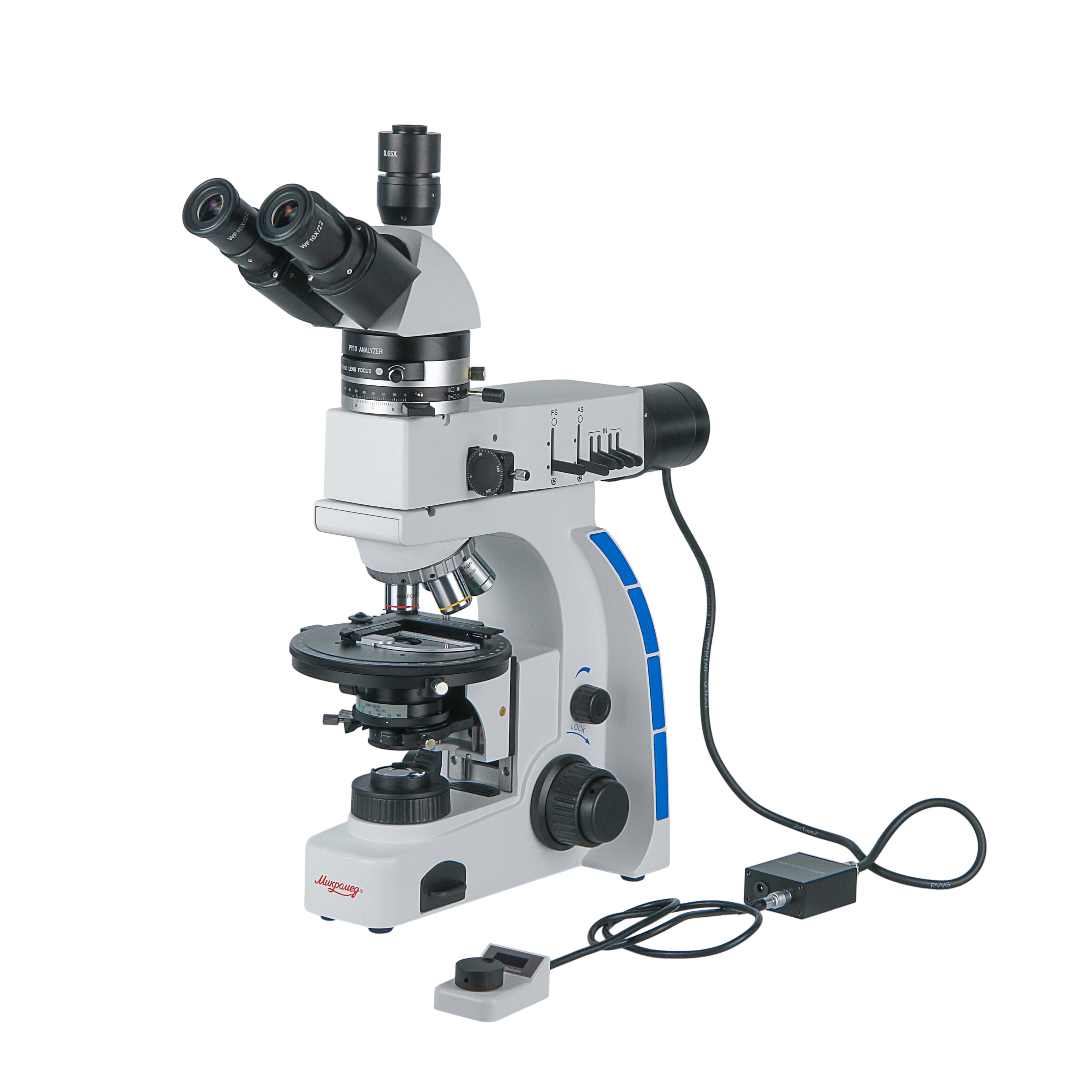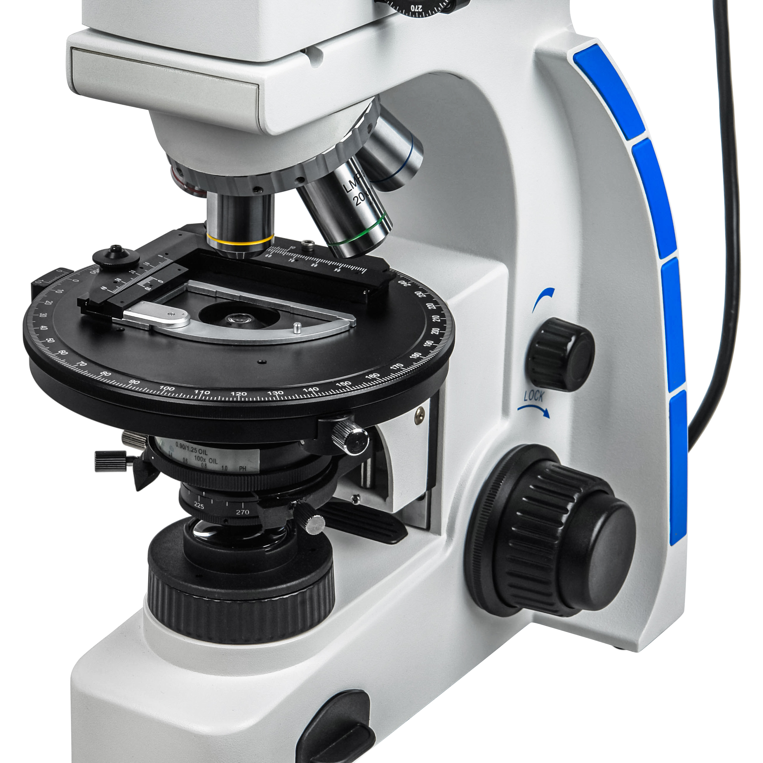 Для работы с поляризацией используется поляризатор, встроенный в конденсор. Поляризатор вращается на 360⁰. Анализатор установлен в промежуточном тубусе, вращается на 180⁰ и при работе в обычном свете выводится из хода лучей.