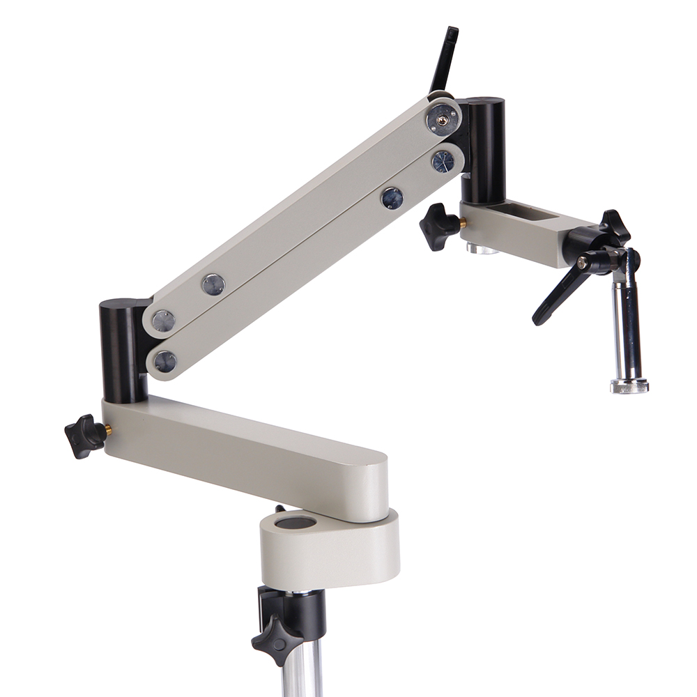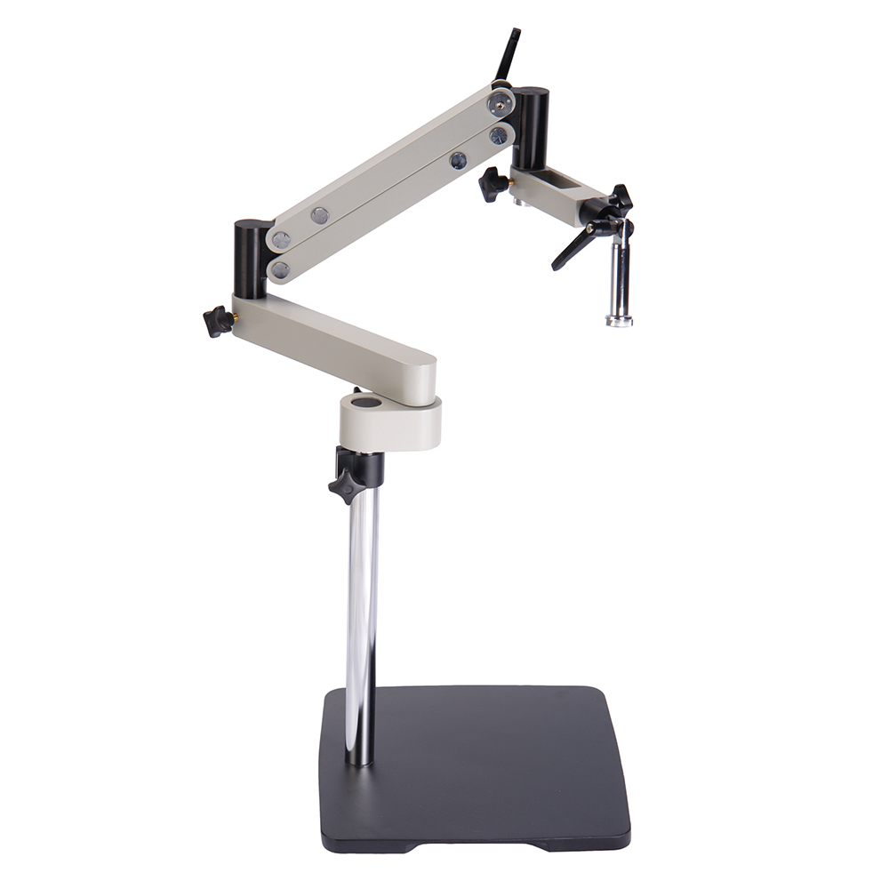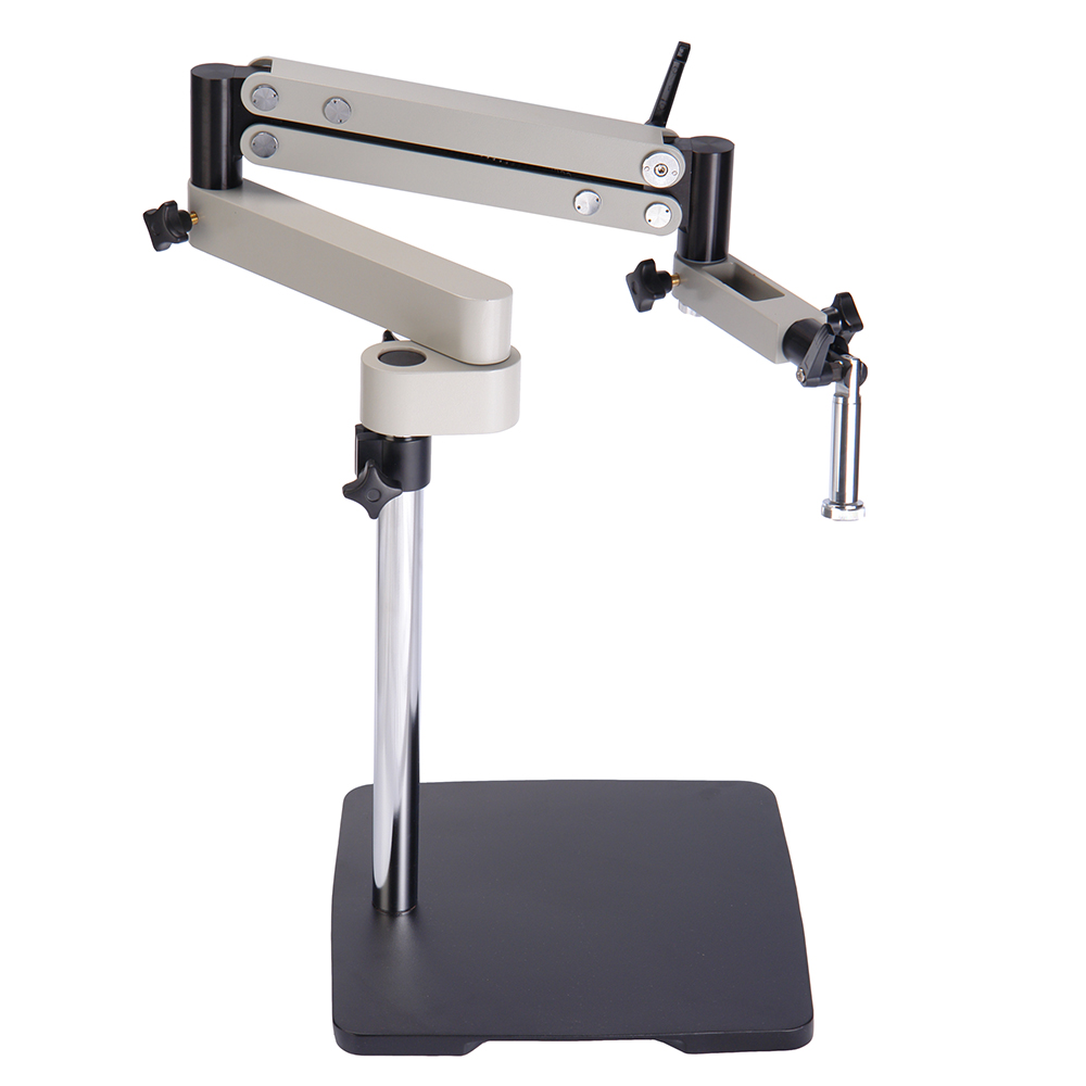 Штатив обеспечивает значительную величину горизонтального выноса головки – расстояние от оптической оси до вертикальной штанги составляет до 950 мм, что позволяет исследовать габаритные объекты и объекты, находящиеся за пределами основания штатива. Значительные величины перемещений достигаются благодаря конструкции штатива с наклонно-поворотной шарнирной руке штатива с пантографом.