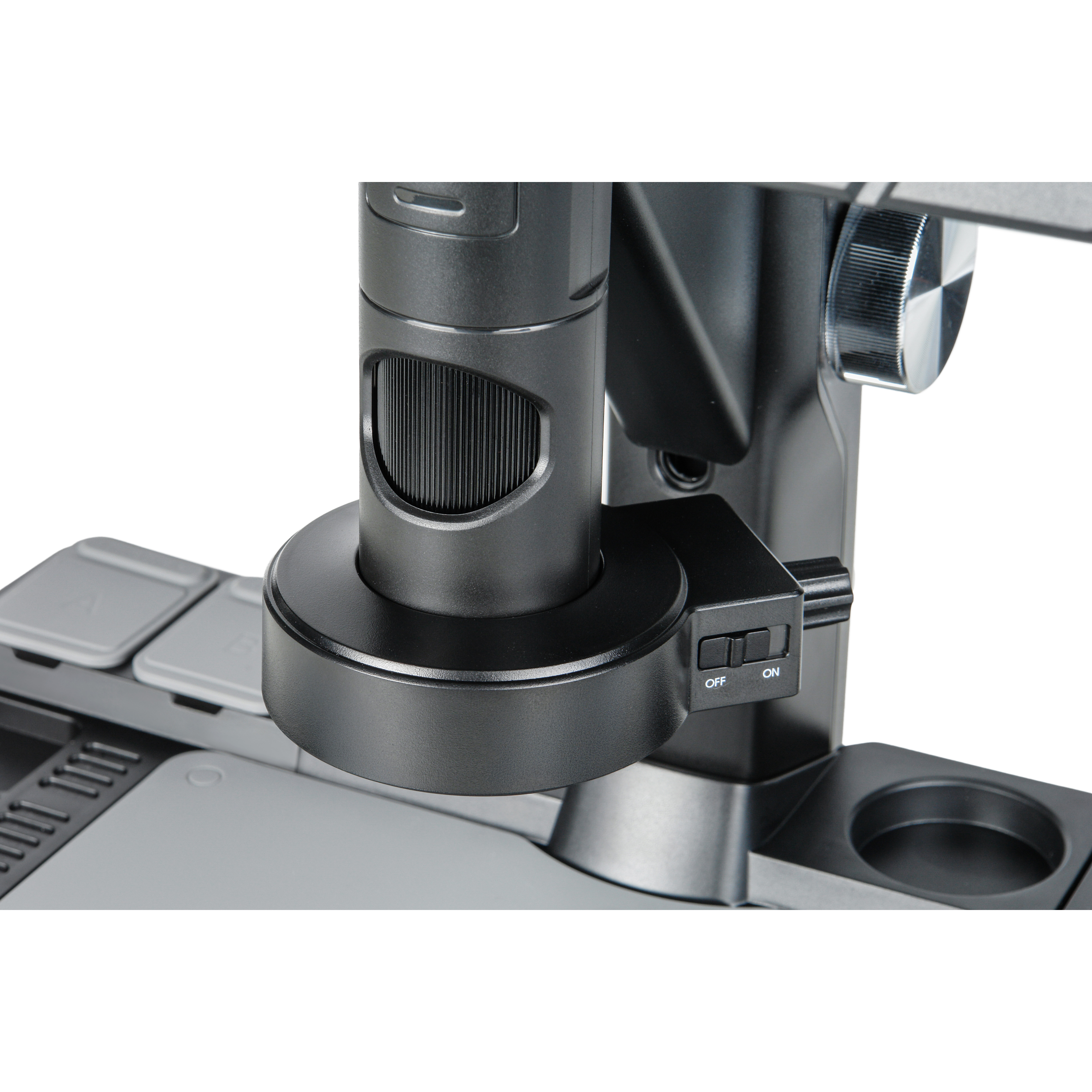 Монитор микроскопа на IPS матрице имеет диагональ 10.1” и разрешение 1024х600. Жидкокристаллическая матрица c технологией IPS позволяет наблюдать отчетливое изображение с углами обзора до 170⁰ без затемнения, это позволяет участвовать в исследованиях нескольким лицам и проводить наблюдения с комфортом. На корпусе монитора расположены кнопки всех основных настроек, слот для карты памяти и интерфейсы USB2.0 и USB Type С.