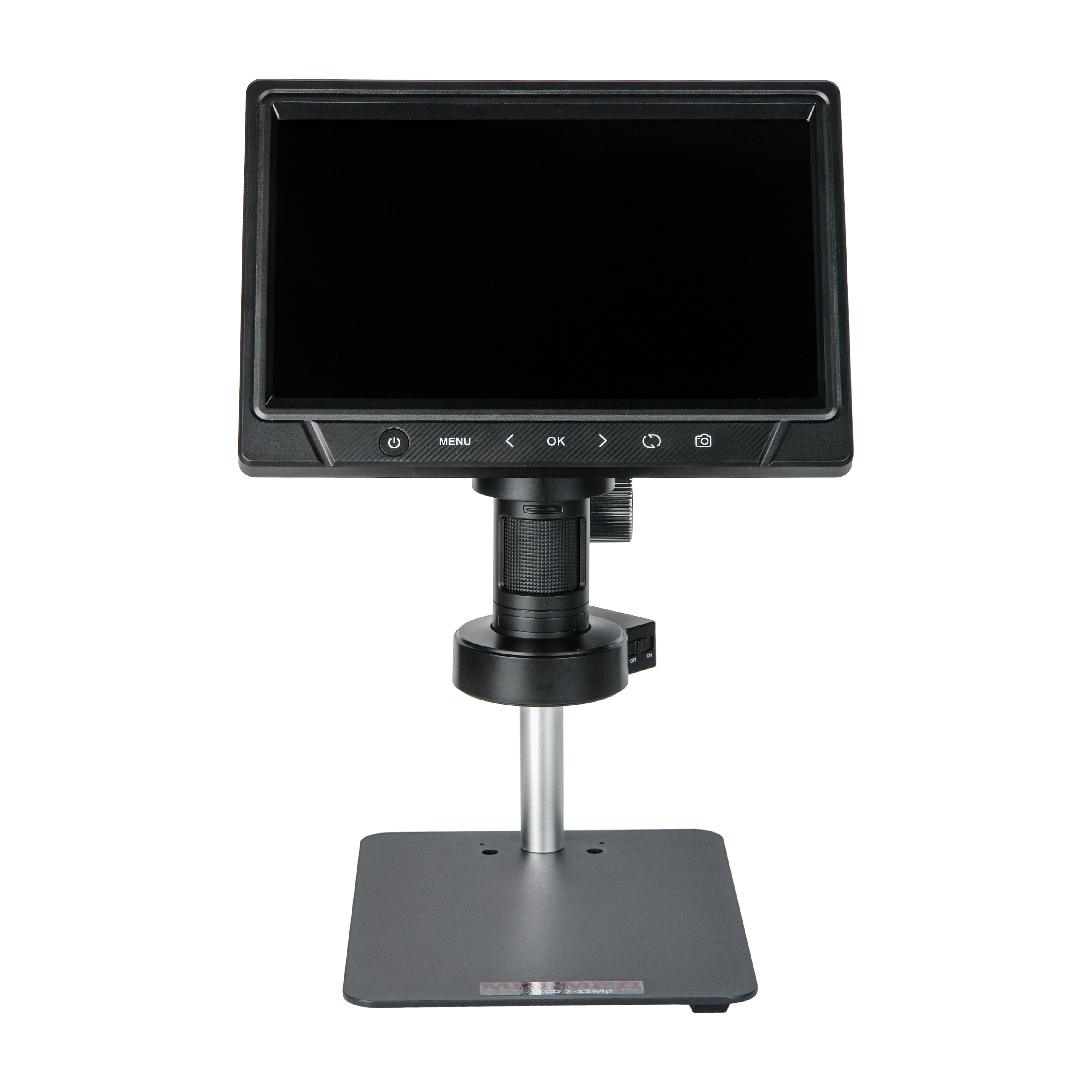 Монитор микроскопа на IPS матрице имеет диагональ 7” и разрешение 1024х600. Жидкокристаллическая матрица c технологией IPS позволяет наблюдать отчетливое изображение с углами обзора до 170⁰ без затемнения, это позволяет участвовать в исследованиях нескольким лицам и проводить наблюдения с комфортом. На корпусе монитора расположены кнопки всех основных настроек, слот для карты памяти и интерфейсы USB2.0 и USB Type С.