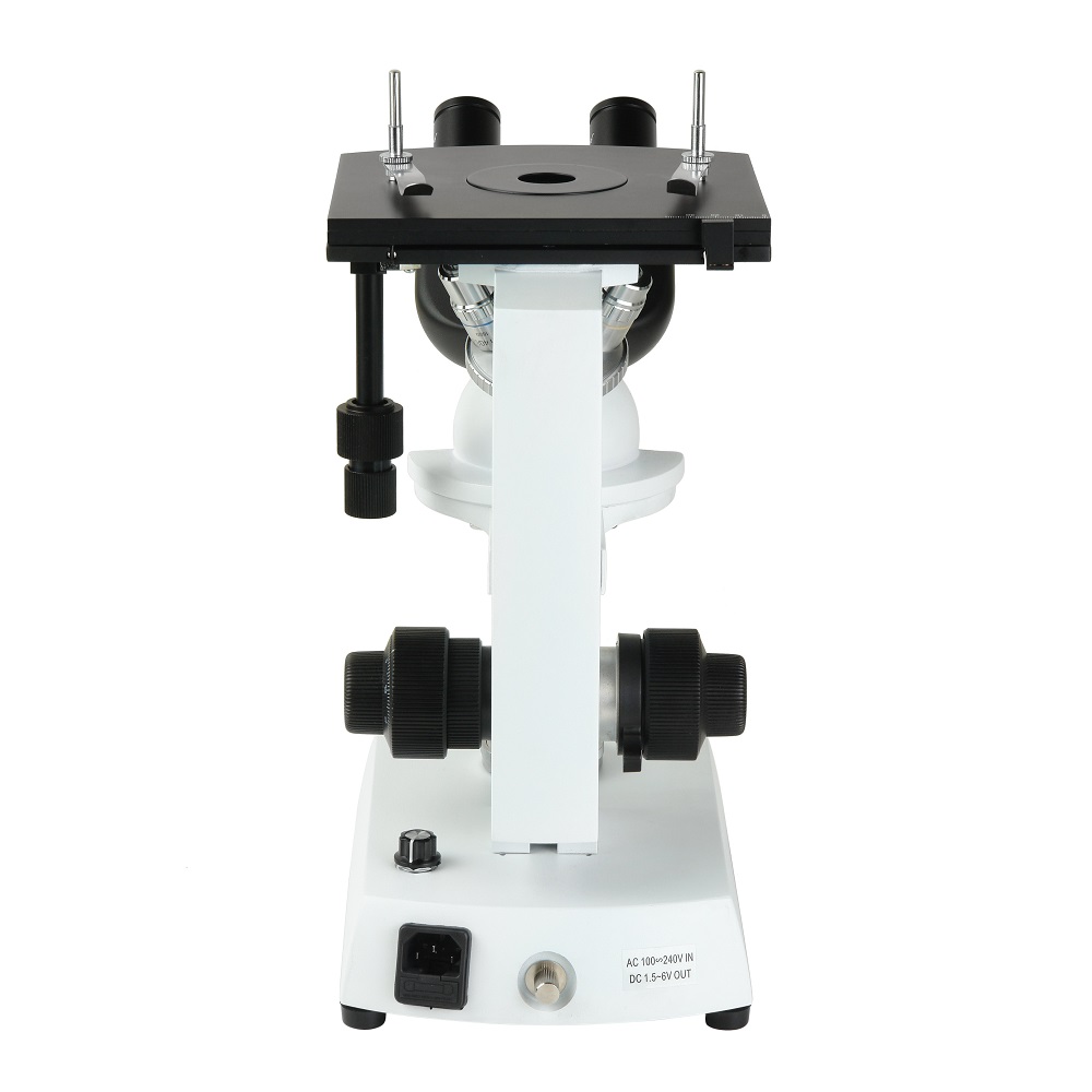 28116Инвертированный микроскоп для наблюдения микроструктуры металлов, сплавов и других непрозрачных объектов в отраженном свете при прямом освещении в светлом поле. Бюджетная студенческая модель. Увеличение 40-500. Револьвер на 4 объектива. Объективы-планахроматы.