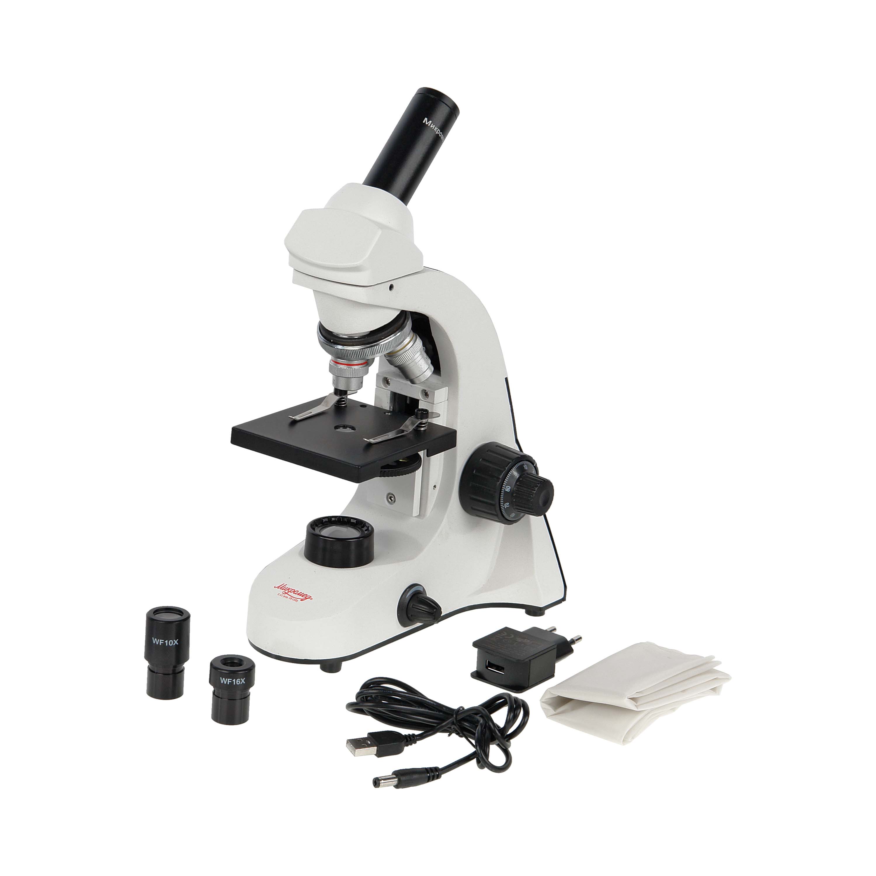 25652Монокулярный биологический микроскоп для исследований в проходящем и отраженном свете по методу светлого поля. Увеличение от 80х до 1280х. Револьверное устройство на 3 объектива. Механизм грубой и тонкой фокусировки. Осветители проходящего и отраженного света на светодиодах. В комплекте 3 объектива, 2 окуляра и линза Барлоу.