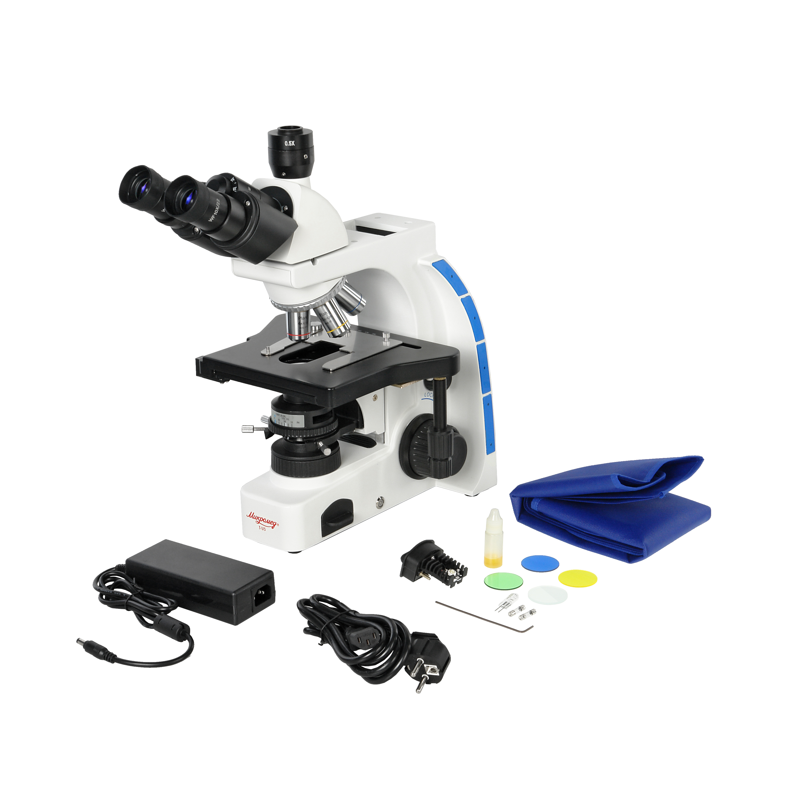 - Увеличение 40х-1000х. С дополнительными окулярами 20х-1600х.