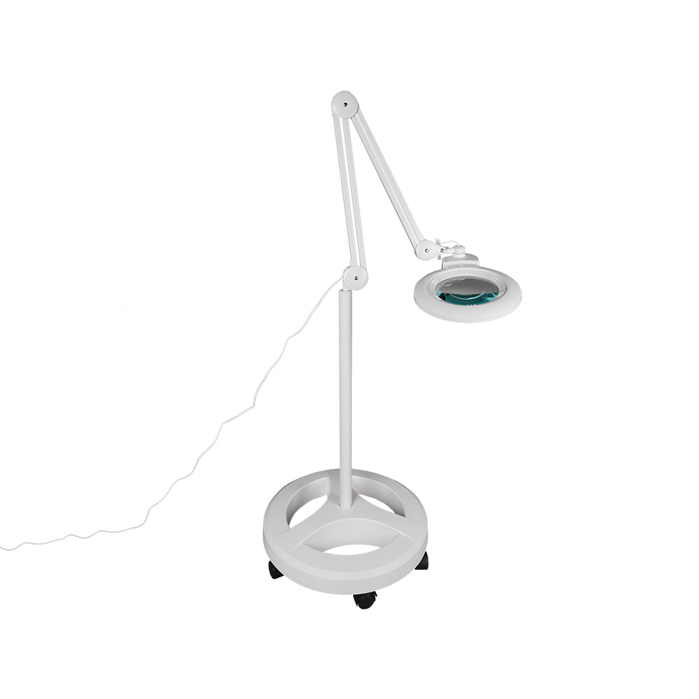 Удобно использовать в косметических и маникюрных салонах, тату-студиях и т. д. Благодаря высокой мобильности передвигать лупу-лампу можно по всему помещению, а при необходимости быстро убрать из рабочей зоны мастера. Штатив изготовлен из стали, декоративный колпак-крышка из пластика.