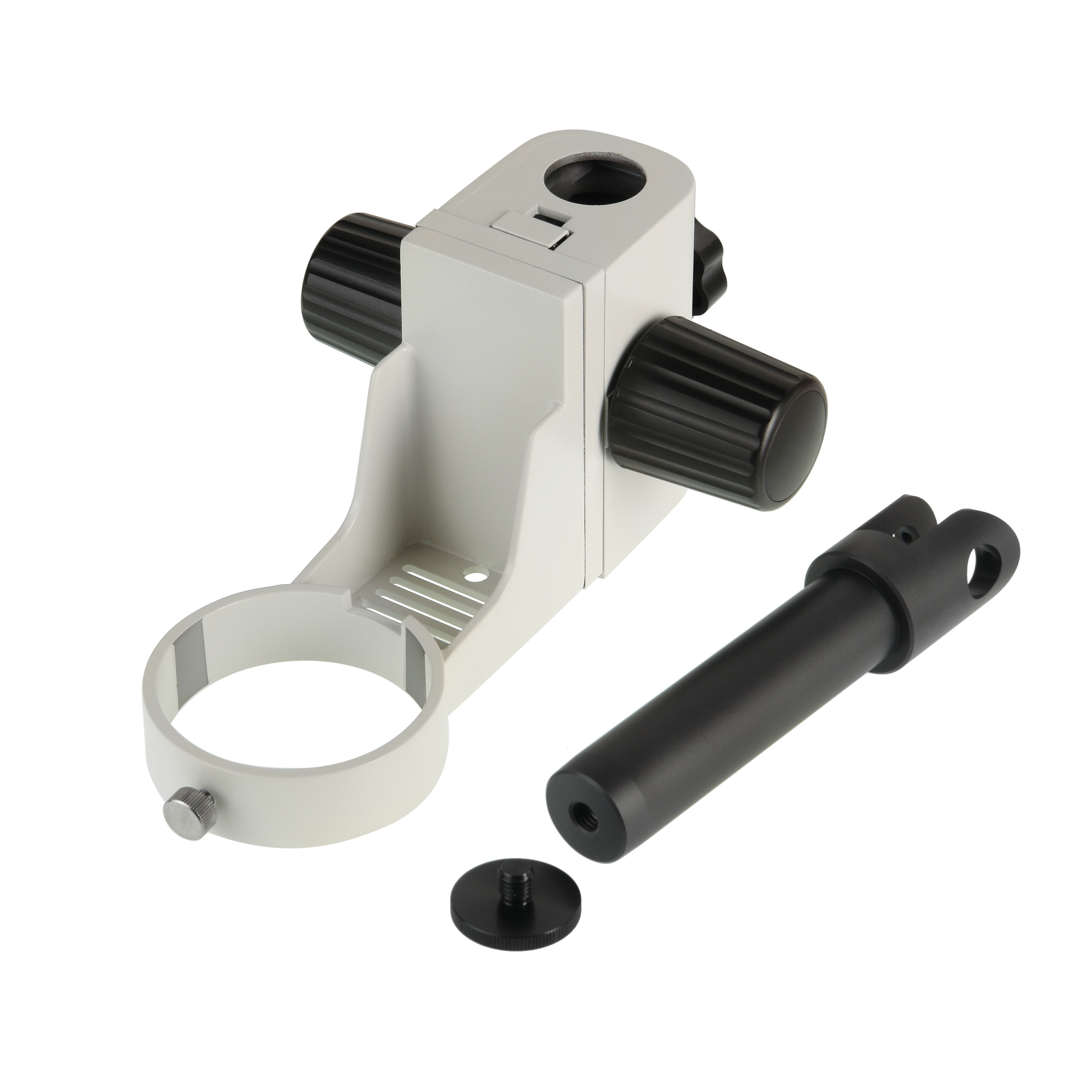 Механизм снабжен кольцевым кронштейном с фиксирующим винтом для установки оптических головок стереомикроскопов Микромед MC-А-0880 и MC-А-0880-tilt при необходимости их использования с дополнительным штативом. Посадочный диаметр кронштейна механизма 76 мм. Для установки на палец штатива предназначено отверстие диаметром 30 мм с фиксирующим винтом. Установочный палец входит в комплект.