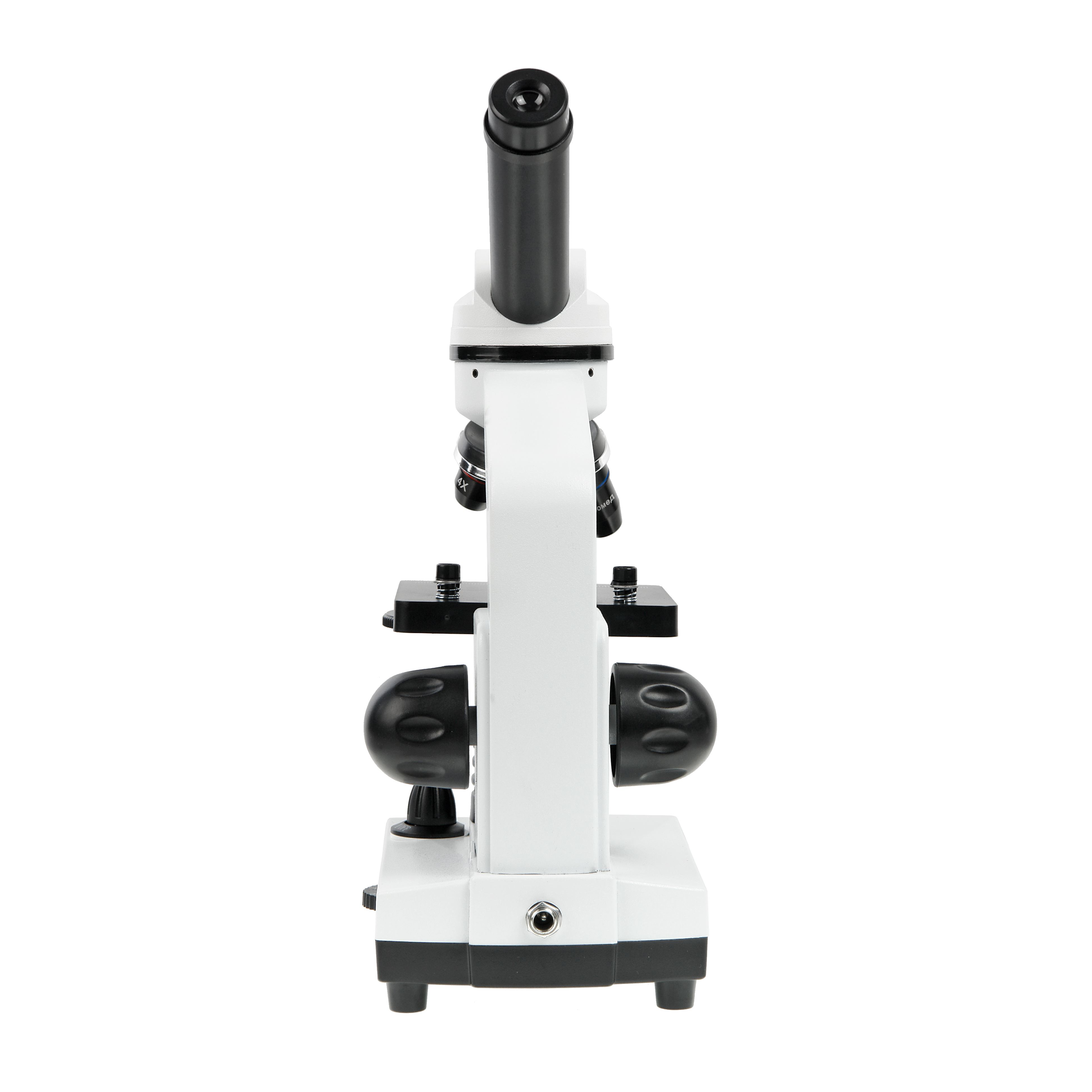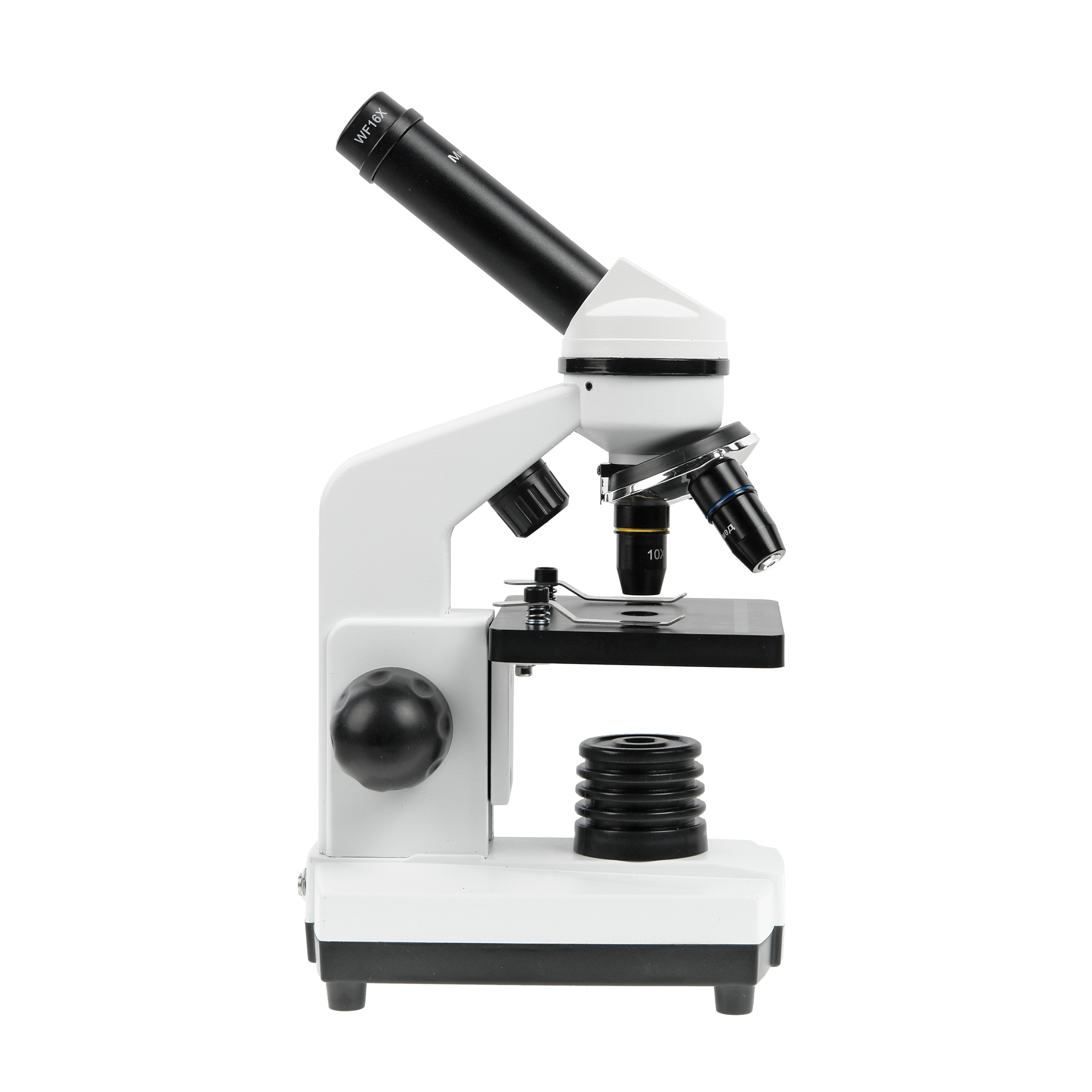 Увеличение 1600х – абсолютный максимум для учебных микроскопов бюджетного класса. Входящие в комплект окуляры с увеличением 10х, 16х и 20х с объективом 40х и с входящей в комплект 2х линзой Барлоу, позволяют получать увеличение микроскопа 800х, 1280х и 1600х. Линзу можно сдвигать вдоль оптической оси окулярного тубуса, плавно изменяя тем самым увеличение. Оправа линзы имеет шкалу для установки необходимых значений увеличения. Использование линзы Барлоу приводит к уменьшению поля зрения микроскопа и снижению яркости наблюдаемого изображения.