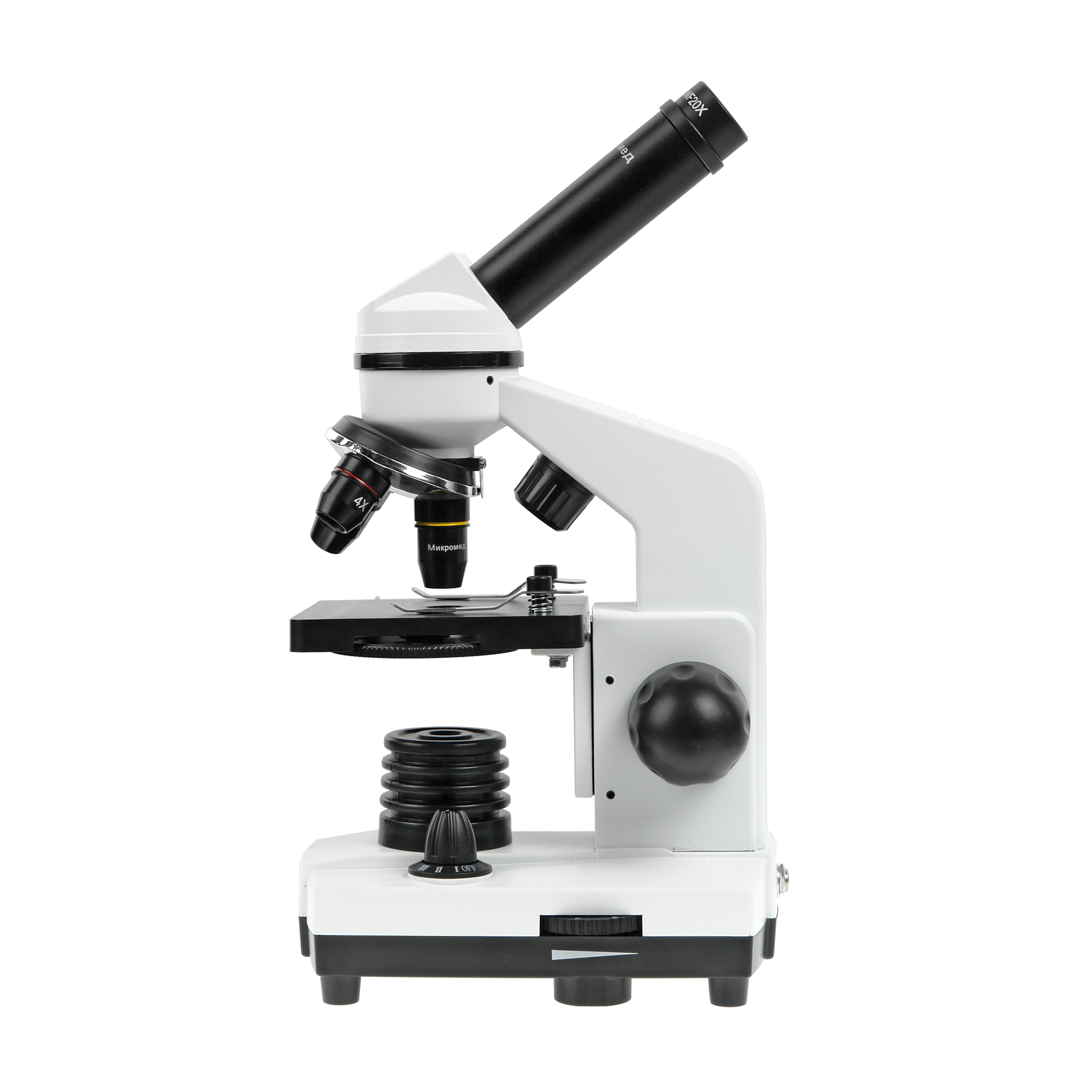 В комплекте микроскопа резкие ахроматические объективы 4x/0.10, 10x/0.25 и 40x/0.65, позволяющие наблюдать детальные и яркие изображения. Объектив 40x/0.65 имеет конструкцию оправы с подпружиненным оптическим блоком, что препятствует повреждению объектива и изучаемого образца. Все оптические элементы микроскопа - объективы и окуляры изготовлены из оптических стекол высокого качества и имеют просветляющее покрытие. Объективы микроскопа установлены на револьверном устройстве, что позволяет наблюдателю быстро переходить к исследованиям с различными увеличениями.