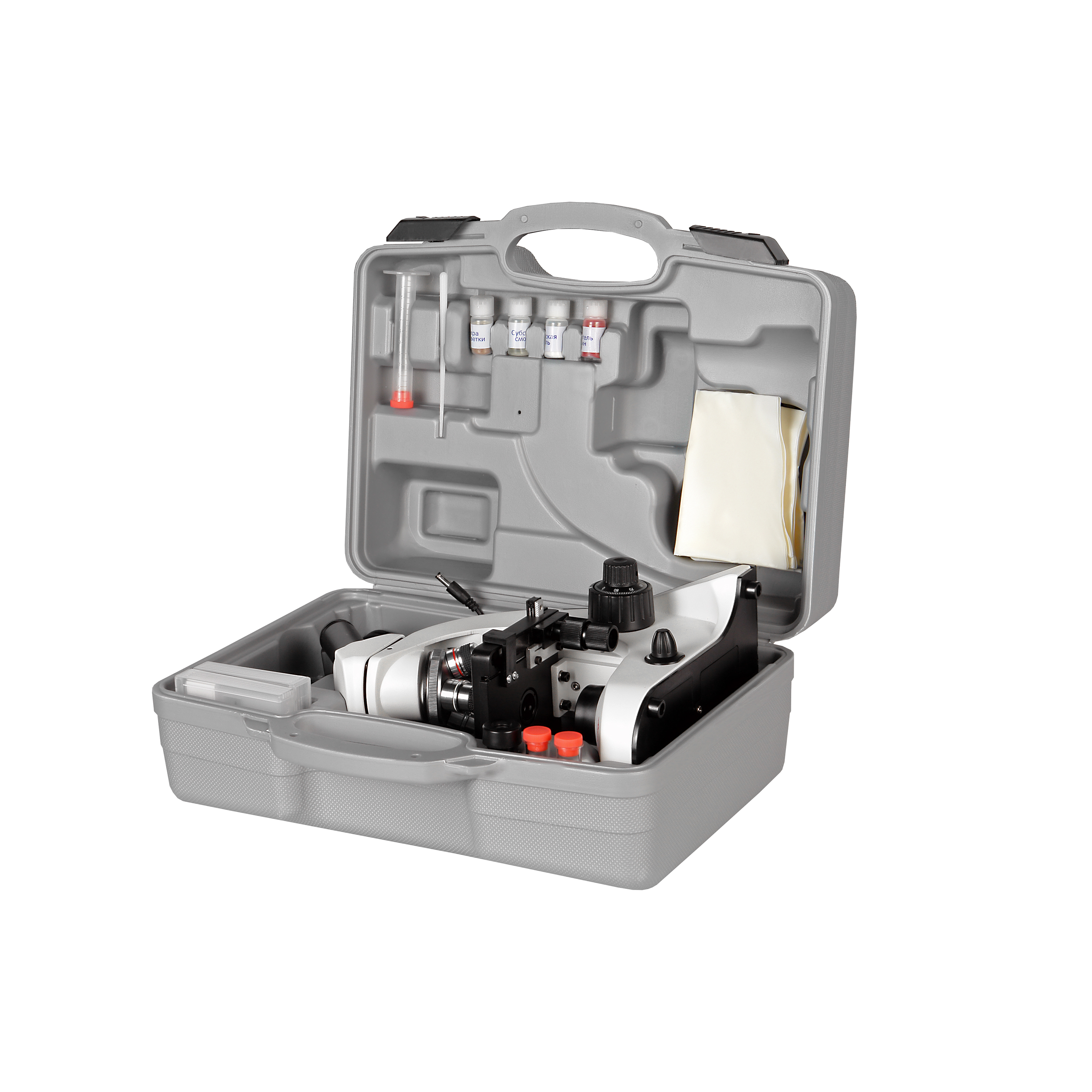 - В комплекте мини-лаборатория с препаратами и принадлежностями