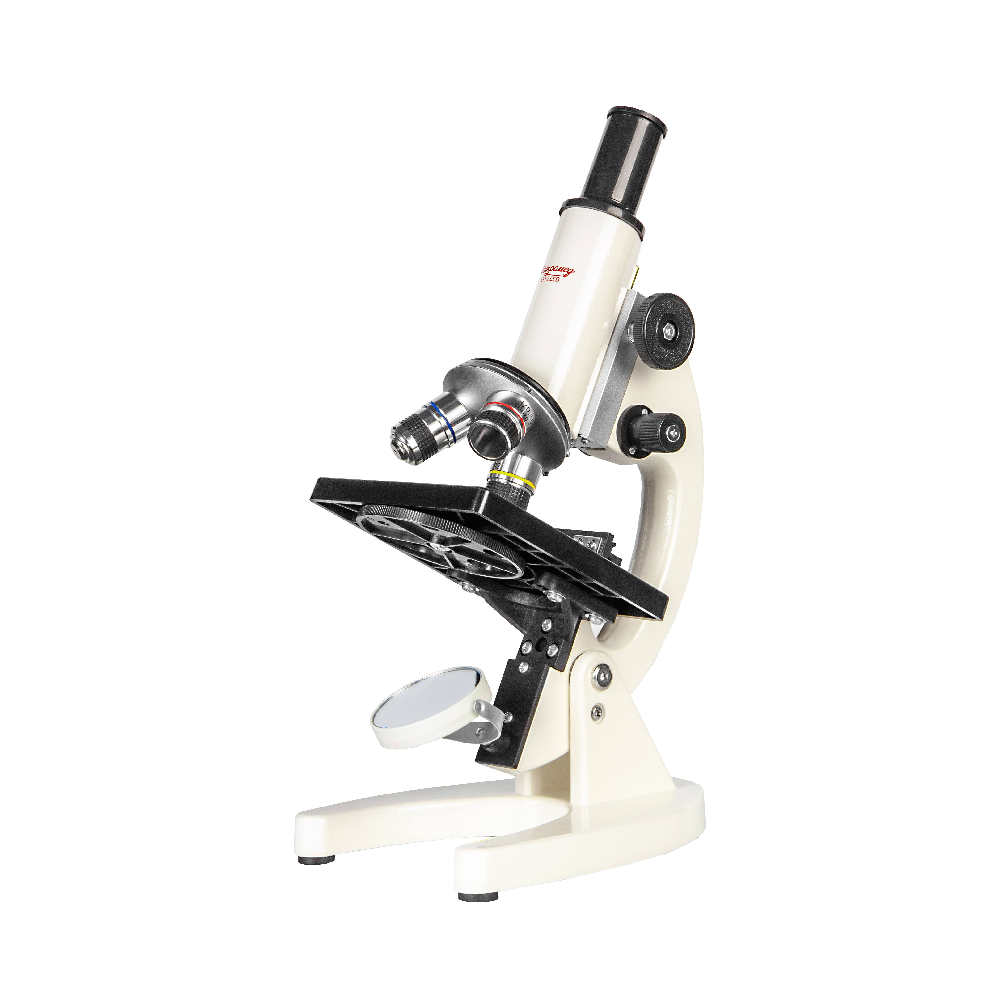 Для освещения исследуемого препарата используется поворотное зеркало со светодиодной подсветкой от встроенного аккумулятора. Микроскоп оборудован предметным столиком с механическим держателем для точного перемещения препарата во взаимно – перпендикулярных направлениях. С помощью микроскопа можно изучать срезы тканей, мазки, прозрачные минералы, кристаллы и многое другое.