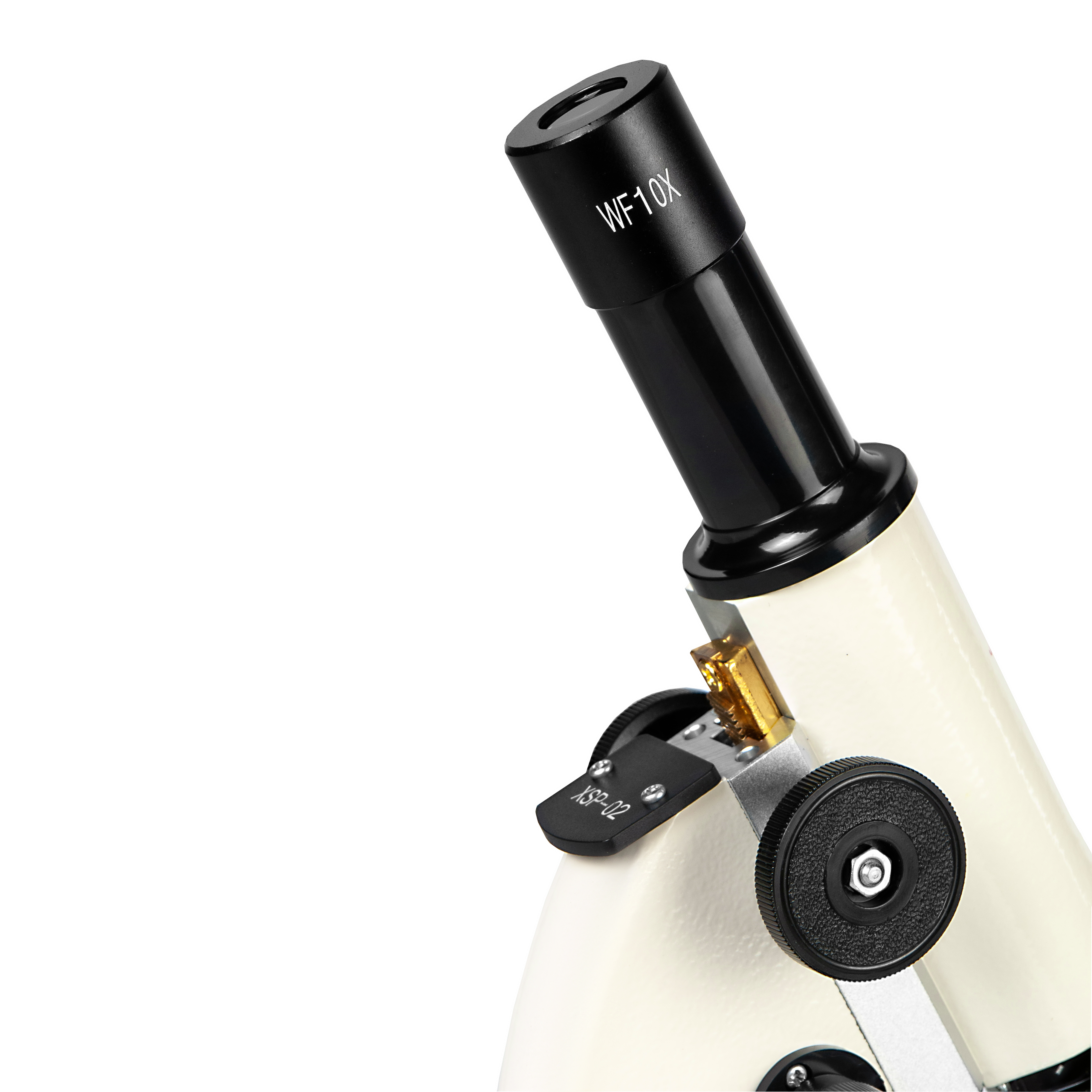 Окуляры WF10х и 20х, входящие в комплект обеспечивают диапазон увеличений микроскопа от 40х до 800х. При необходимости получать малые увеличения от 20х, к микроскопу можно приобрести дополнительный окуляр WF 5х с посадочным диаметром 23.2 мм.