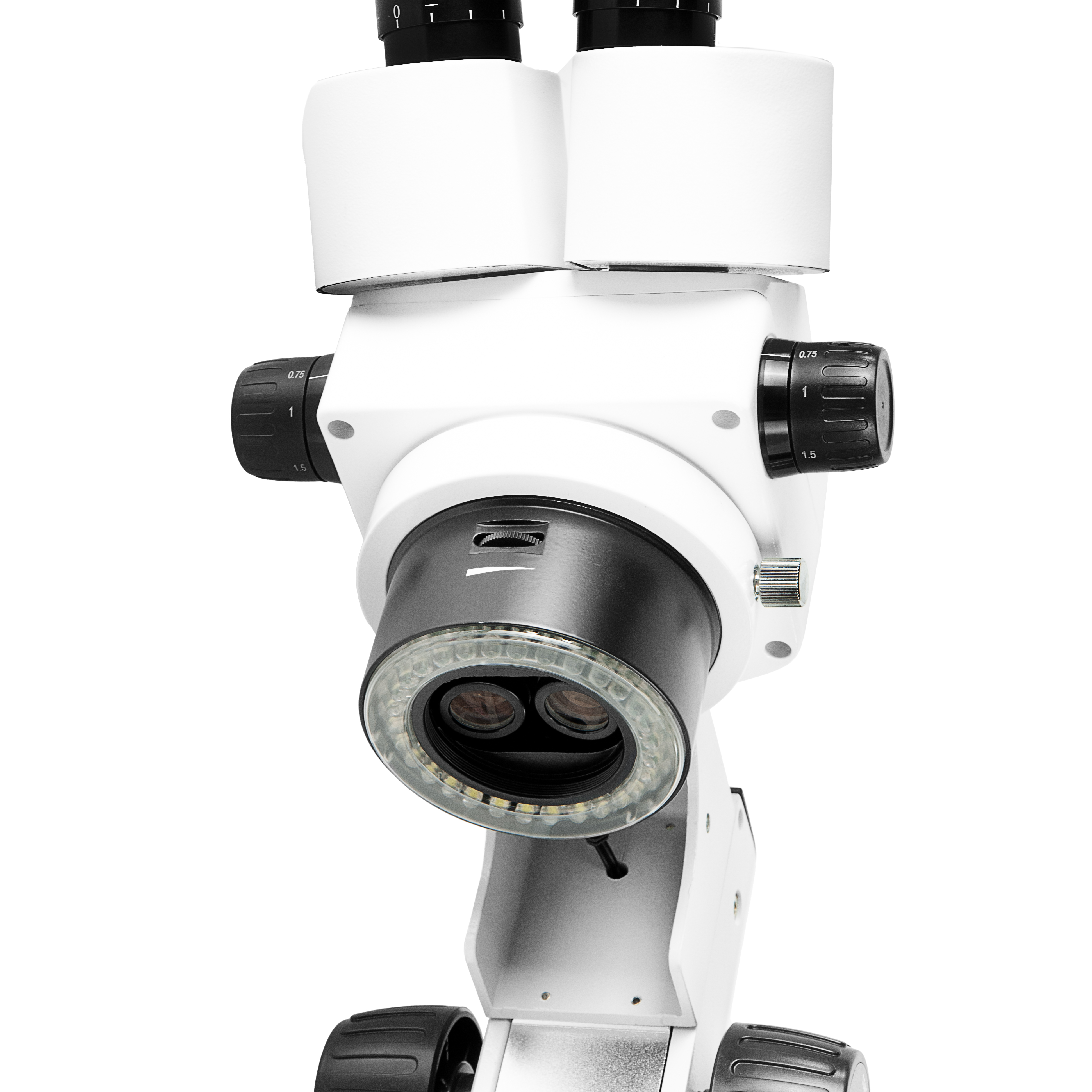 - Плавное изменение увеличения от 7,5х до 50х без потери точной фокусировки.