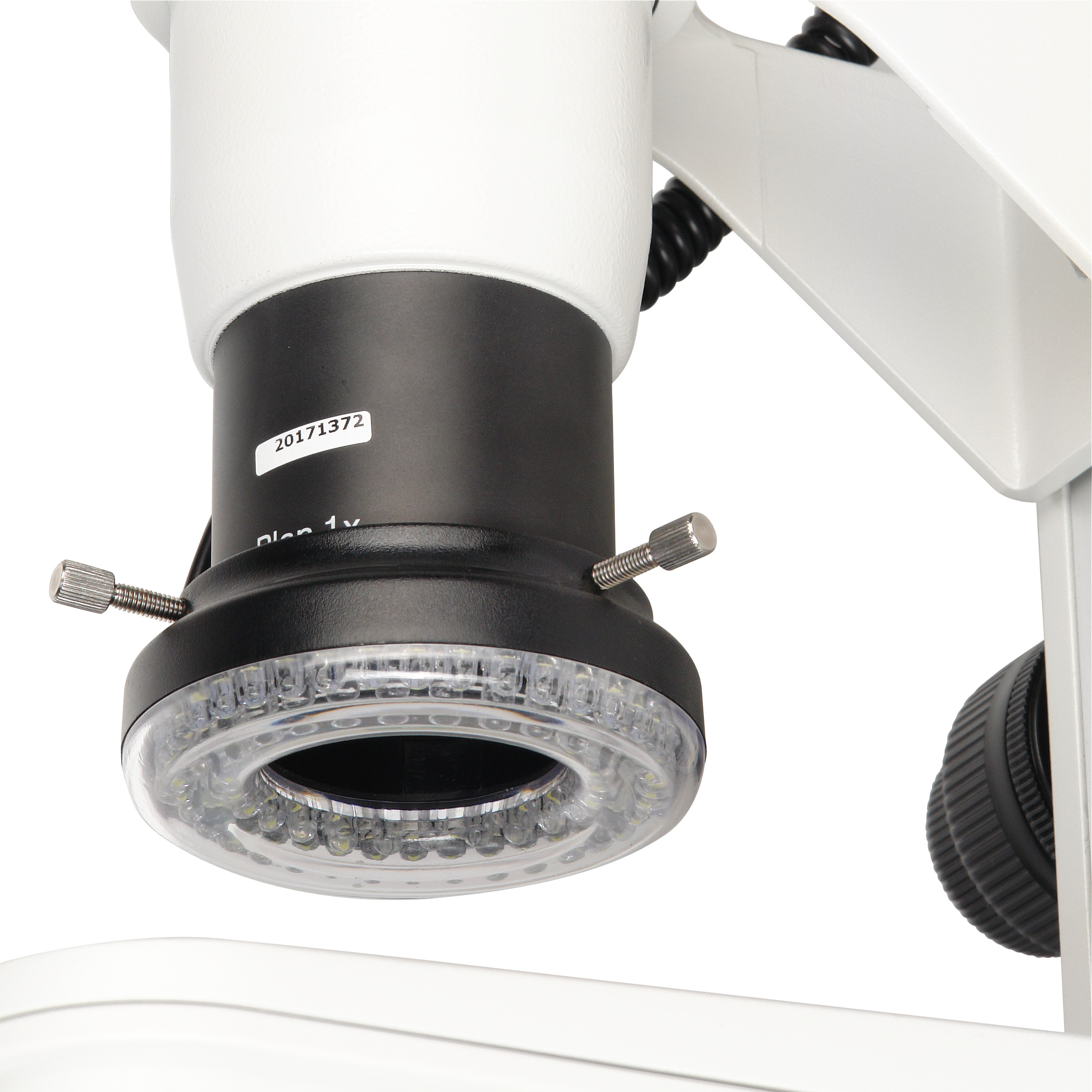 Два осветителя микроскопа позволяют исследовать любые объекты, как прозрачные, так и непрозрачные. Кольцевой LED-источник отраженного имеет 50 светодиодов, расположенных вокруг объектива. Подобная конфигурация создает бестеневое освещение, что позволяет наблюдать изображение без искажений формы деталей объекта, вызываемого резкими тенями.