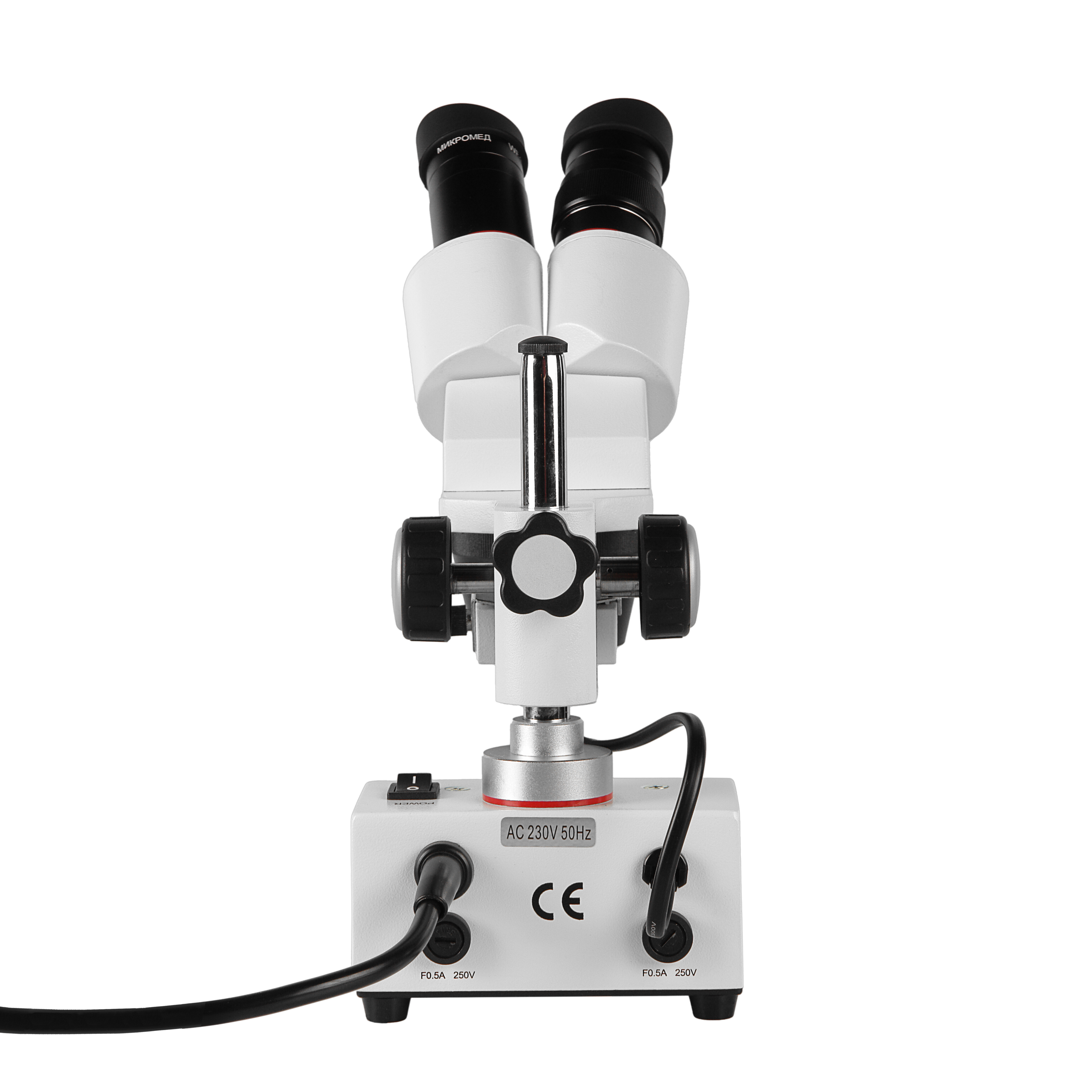 10545Стереомикроскоп с двумя фиксированными увеличениями 20х и 40х для наблюдения прямого изображения трехмерных объектов. Постоянное рабочее расстояние 60 мм. Подсветка от встроенного источника отраженного света на галогенной лампе.