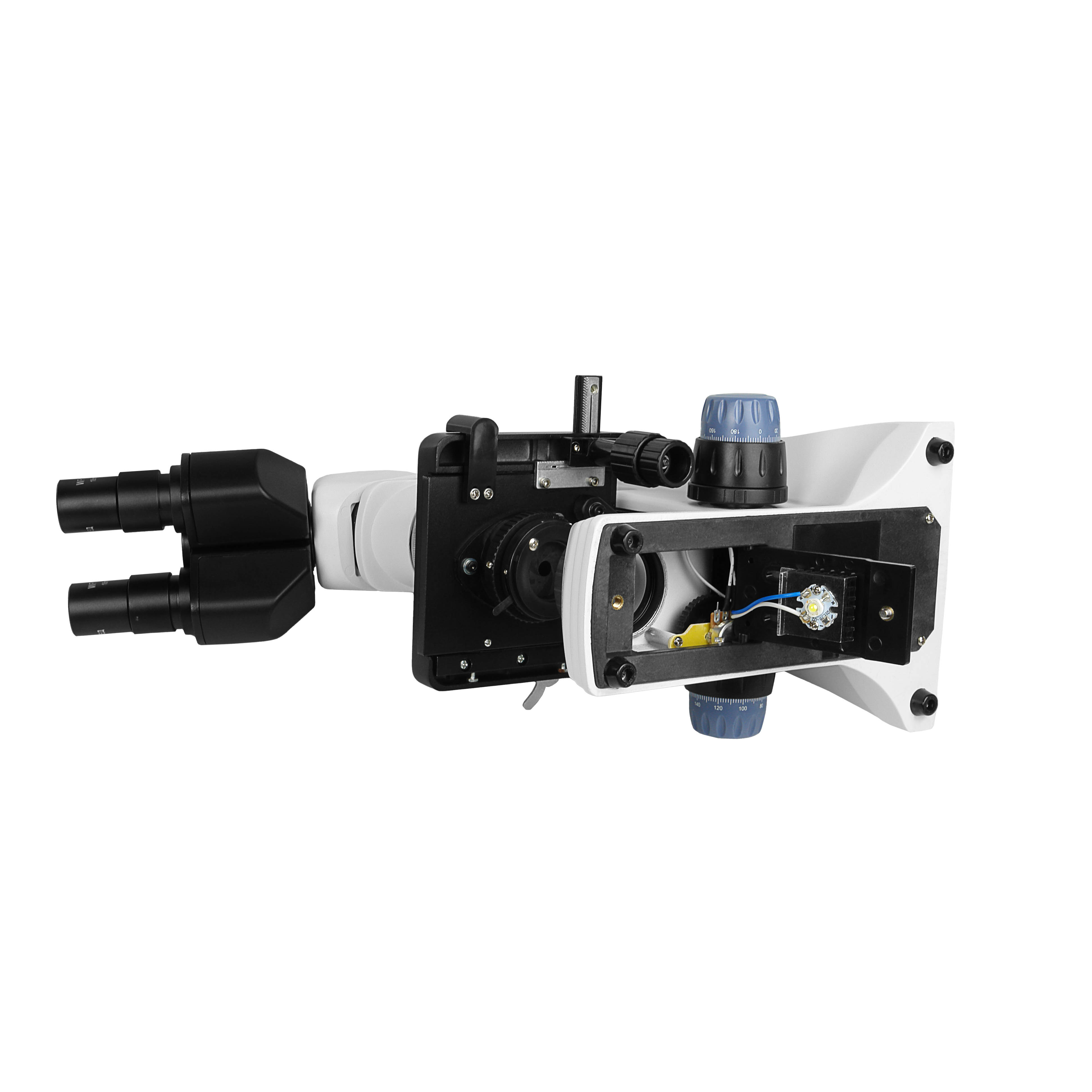 Штатив и основание микроскопа из алюминиевого сплава, основание имеет эргономичную Т-образную форму и составляет единое целое со штативом. Конструкция микроскопа гарантирует надежность конструкции, стабильность и точность настроек. Основание и штатив микроскопа имеют износостойкое покрытие с антистатическими свойствами.