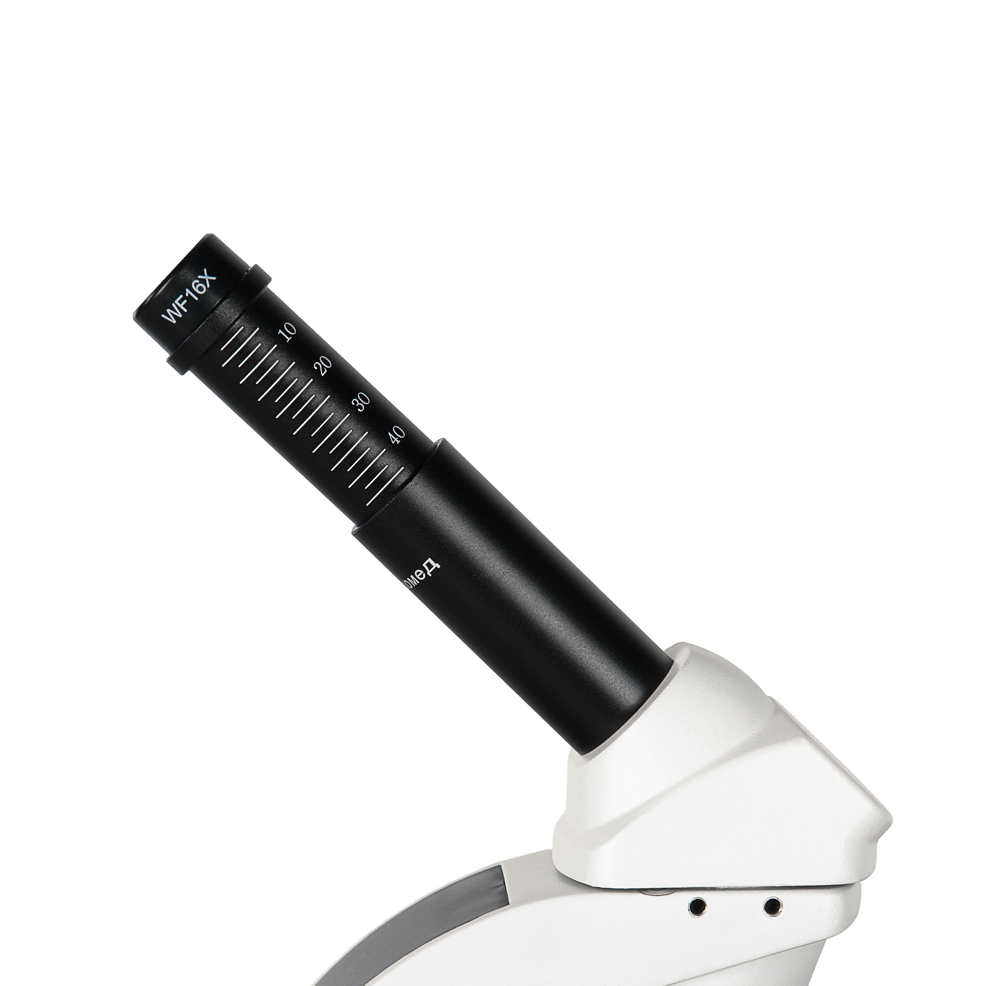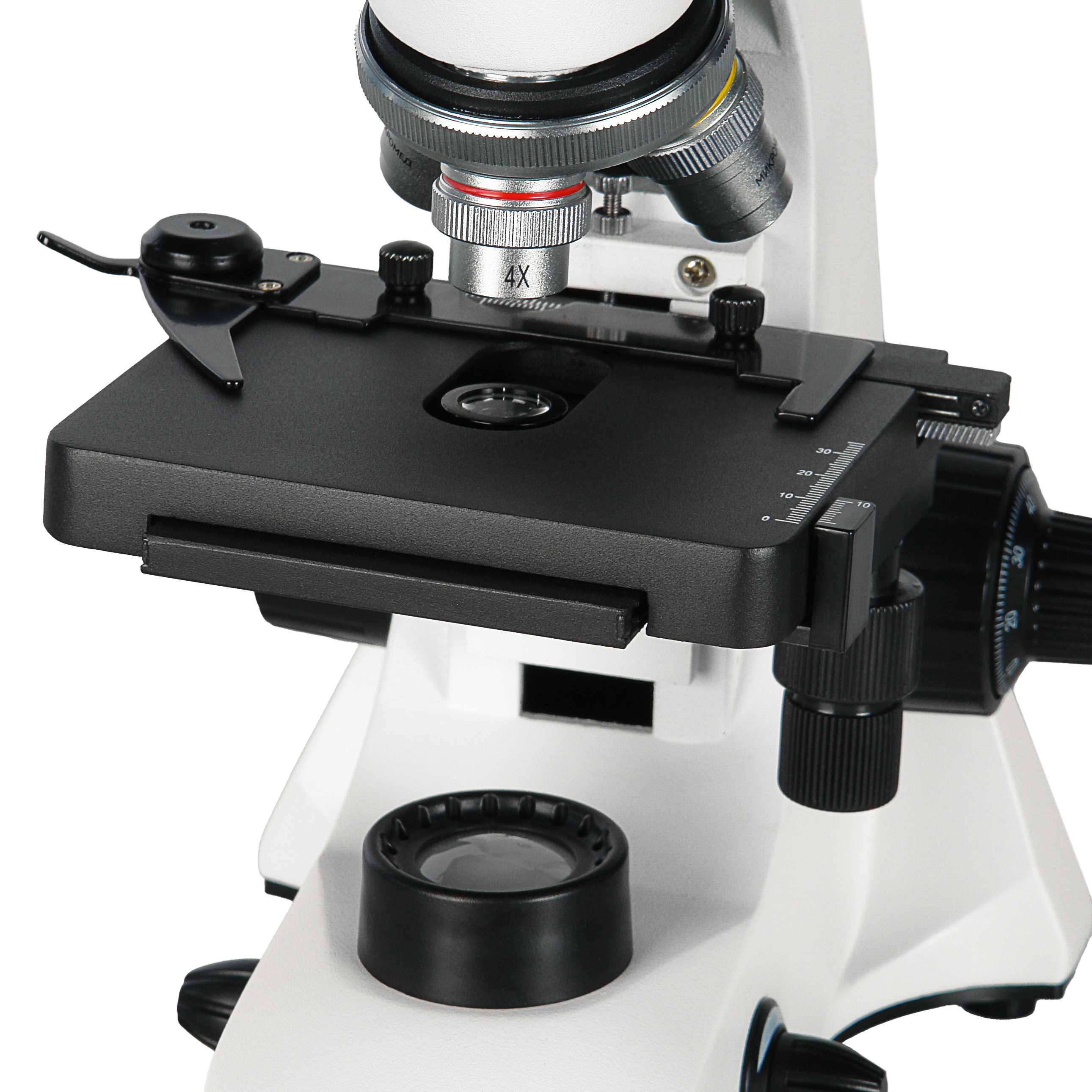 В комплекте микроскопа исправленные объективы с увеличением 4х, 10х, 40х, окуляры WF 10х, WF 20х, WF 16х и линза Барлоу 2х. Объективы и окуляры обеспечивают общее увеличение микроскопа от 40х до 800х. Линза Барлоу применяется вместе с окуляром WF 16х и позволяет довести увеличение до 1280х.