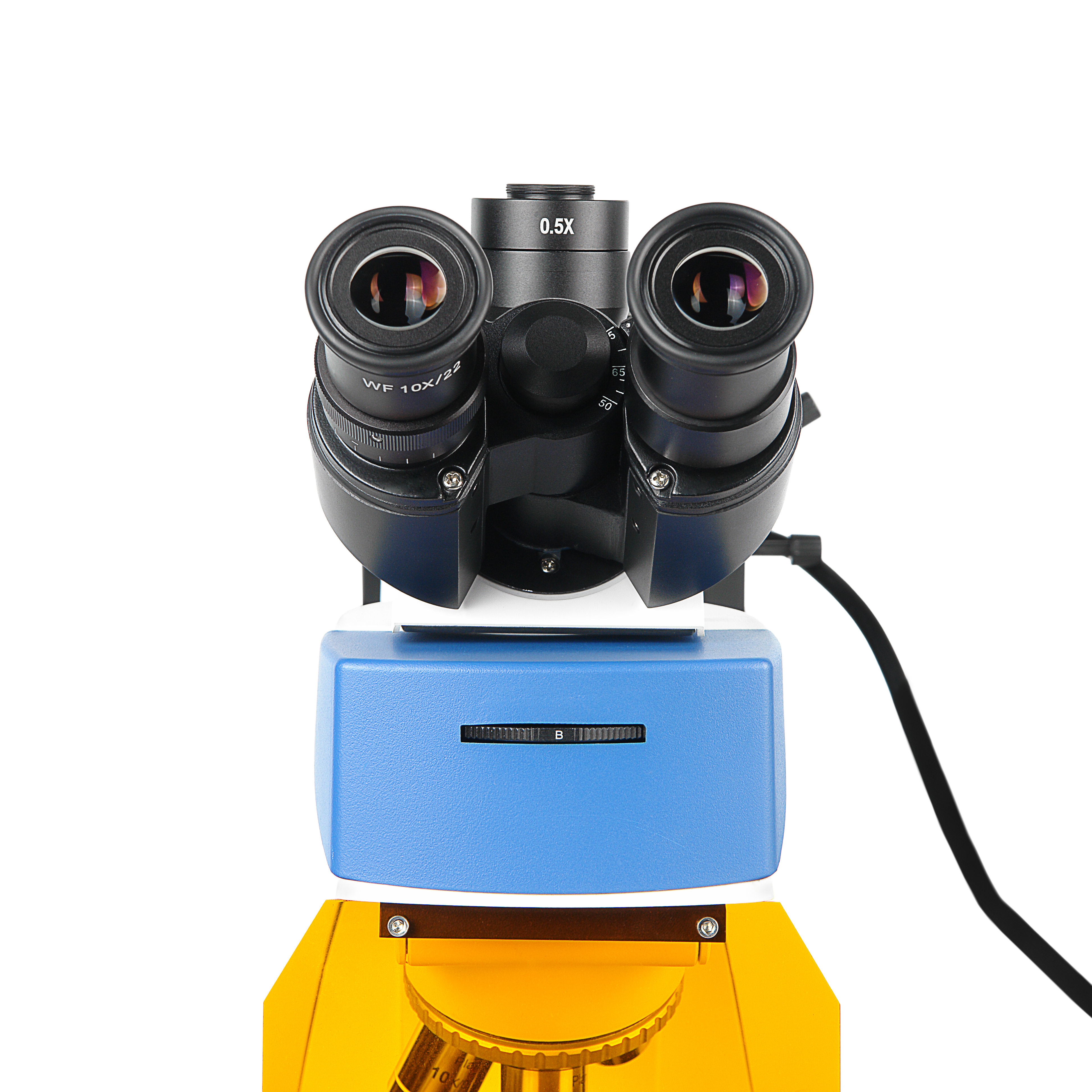 Окулярная камера устанавливается в вертикальный выход канала визуализации с помощью резьбового крепления стандарта C-mount. Благодаря этому возможно выводить данные на внешнее устройство для их просмотра, обработки и систематизации. Оптическая конструкция насадки с распределением света 20:80 позволяет проводить наблюдение через оптические окуляры с одновременным использованием цифрового канала без переключения светового потока. В базовом варианте микроскоп комплектуется адаптером 0.5х, что позволяет использовать большинство цифровых окулярных камер с размером сенсора 1/2.5"- 1/3".