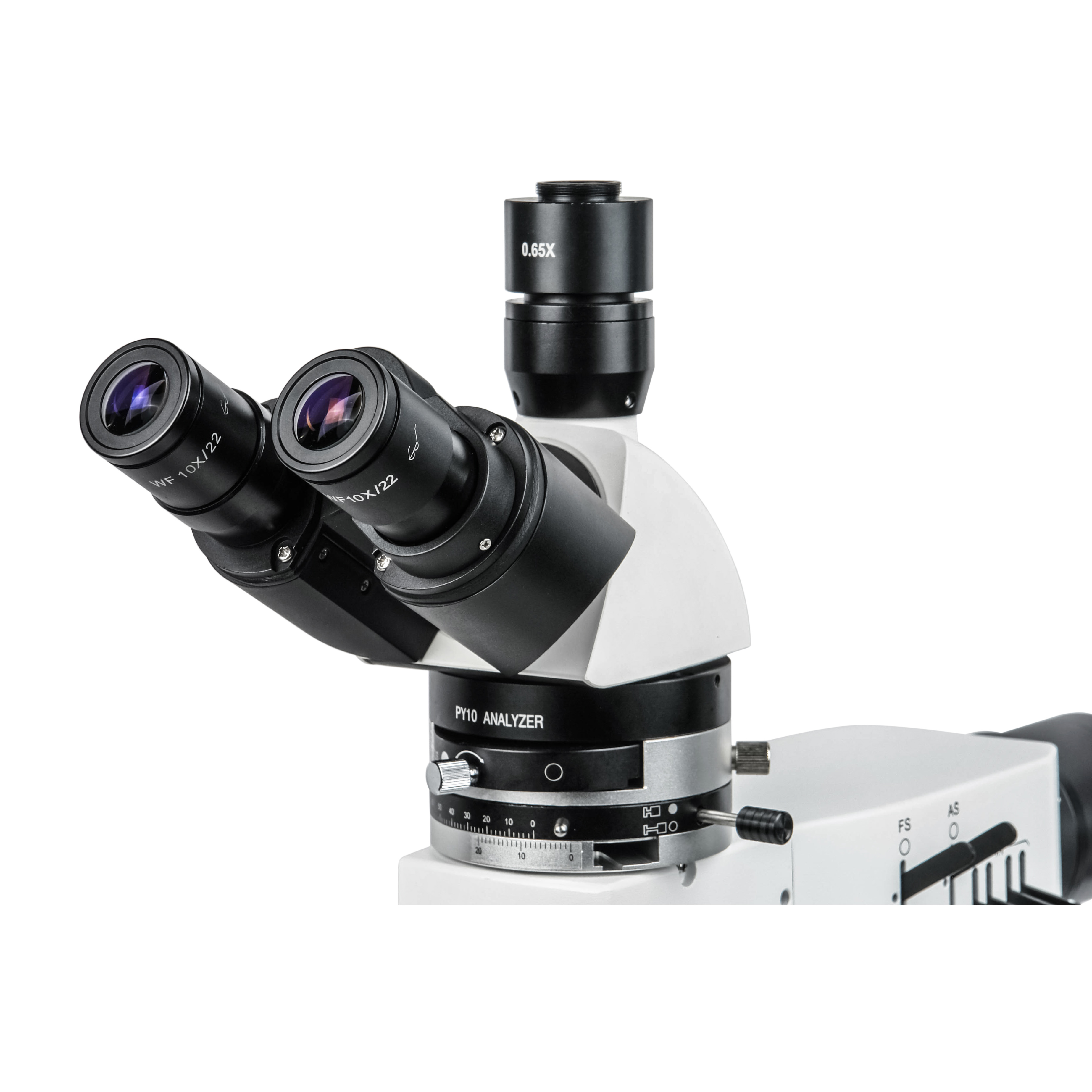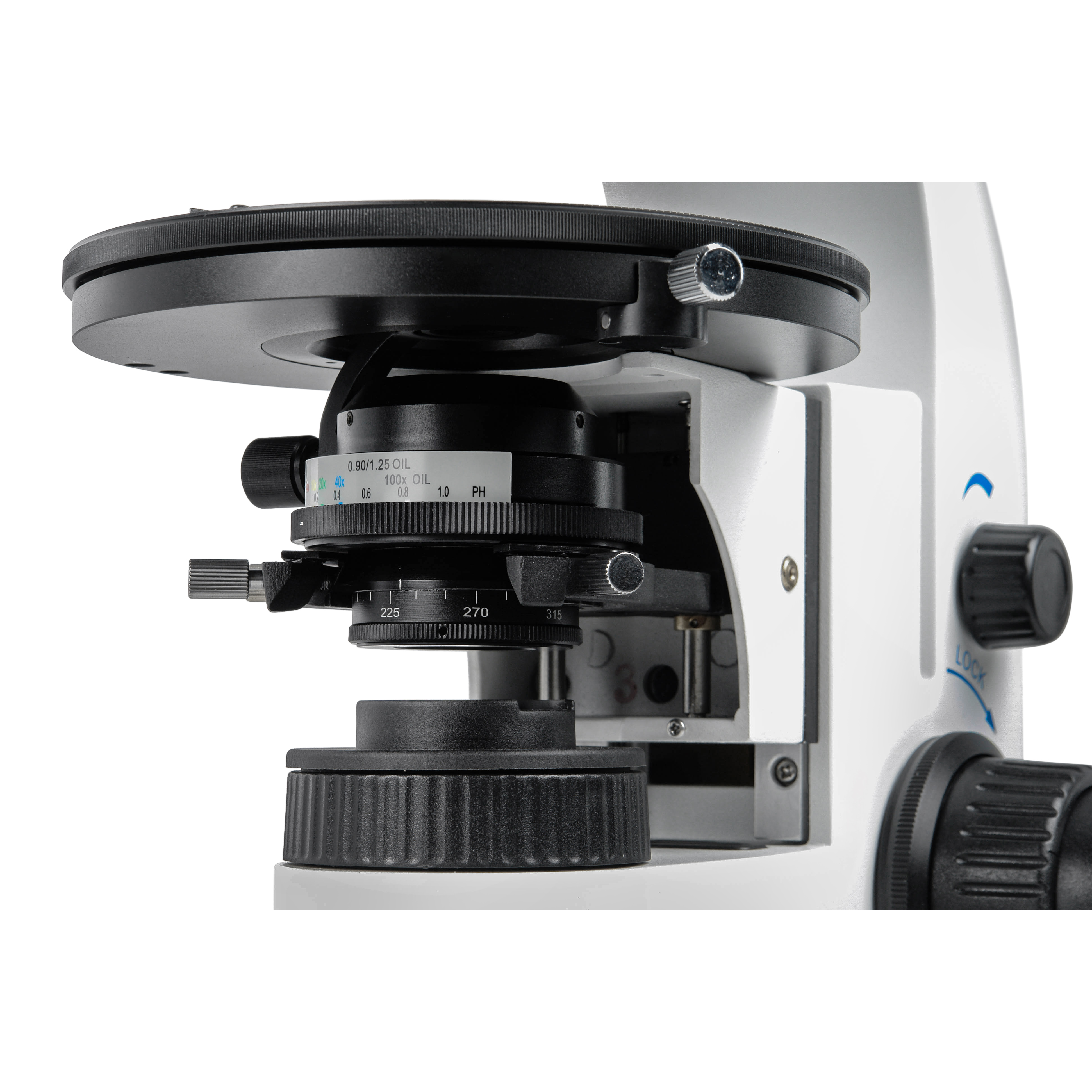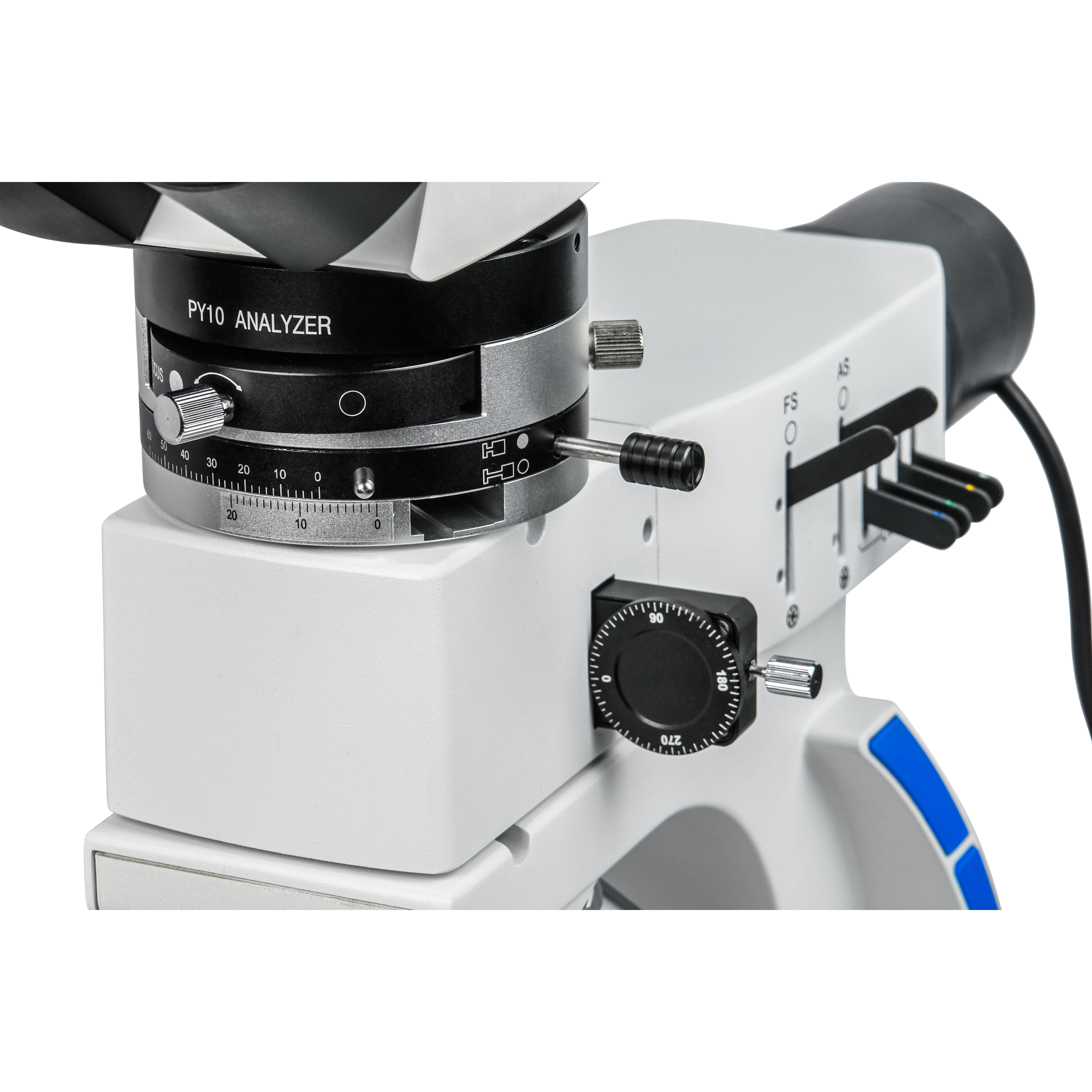 Для работы с поляризацией используется поляризатор, встроенный в конденсор. Поляризатор вращается на 360⁰. Анализатор установлен в промежуточном тубусе, вращается на 180⁰ и при работе в обычном свете выводится из хода лучей.