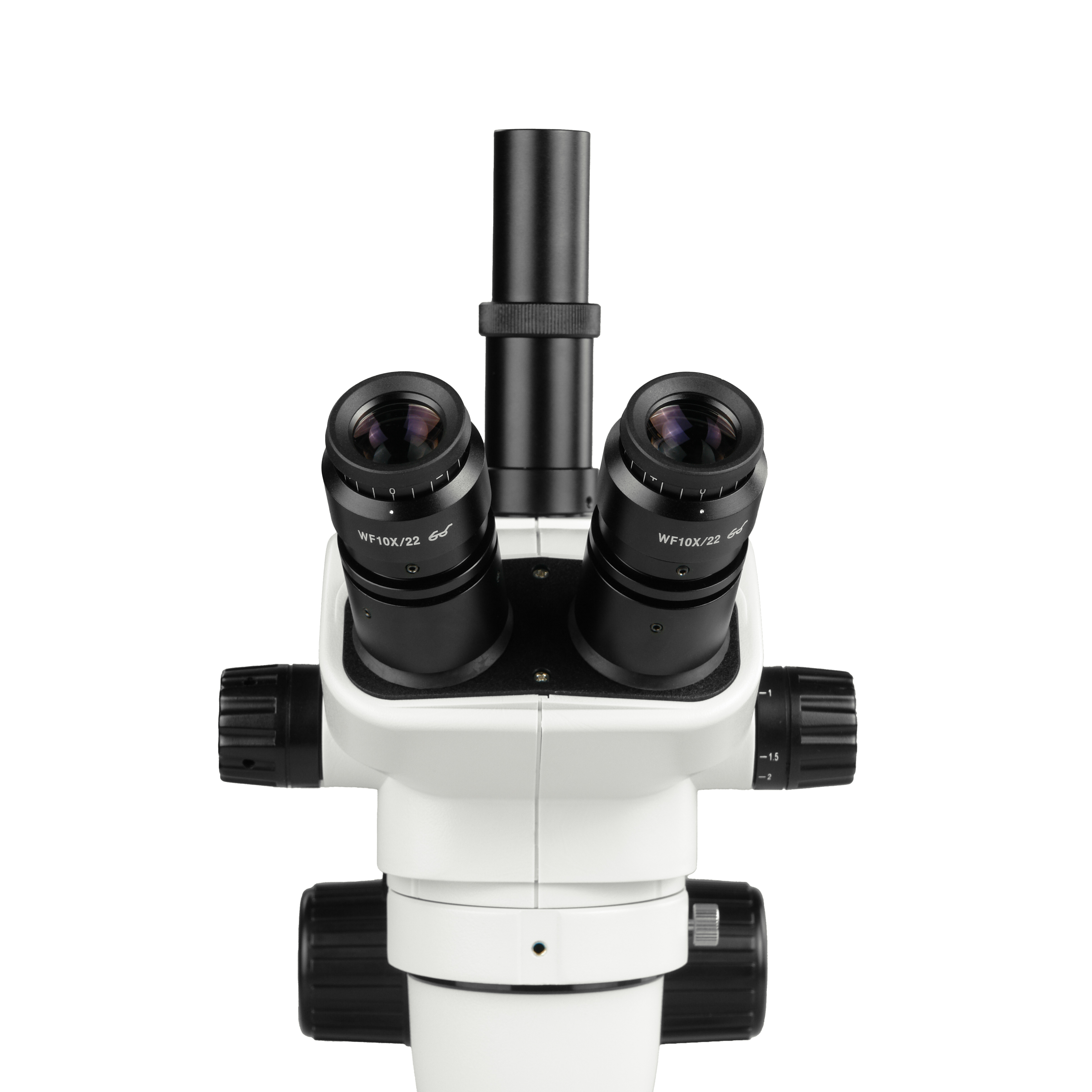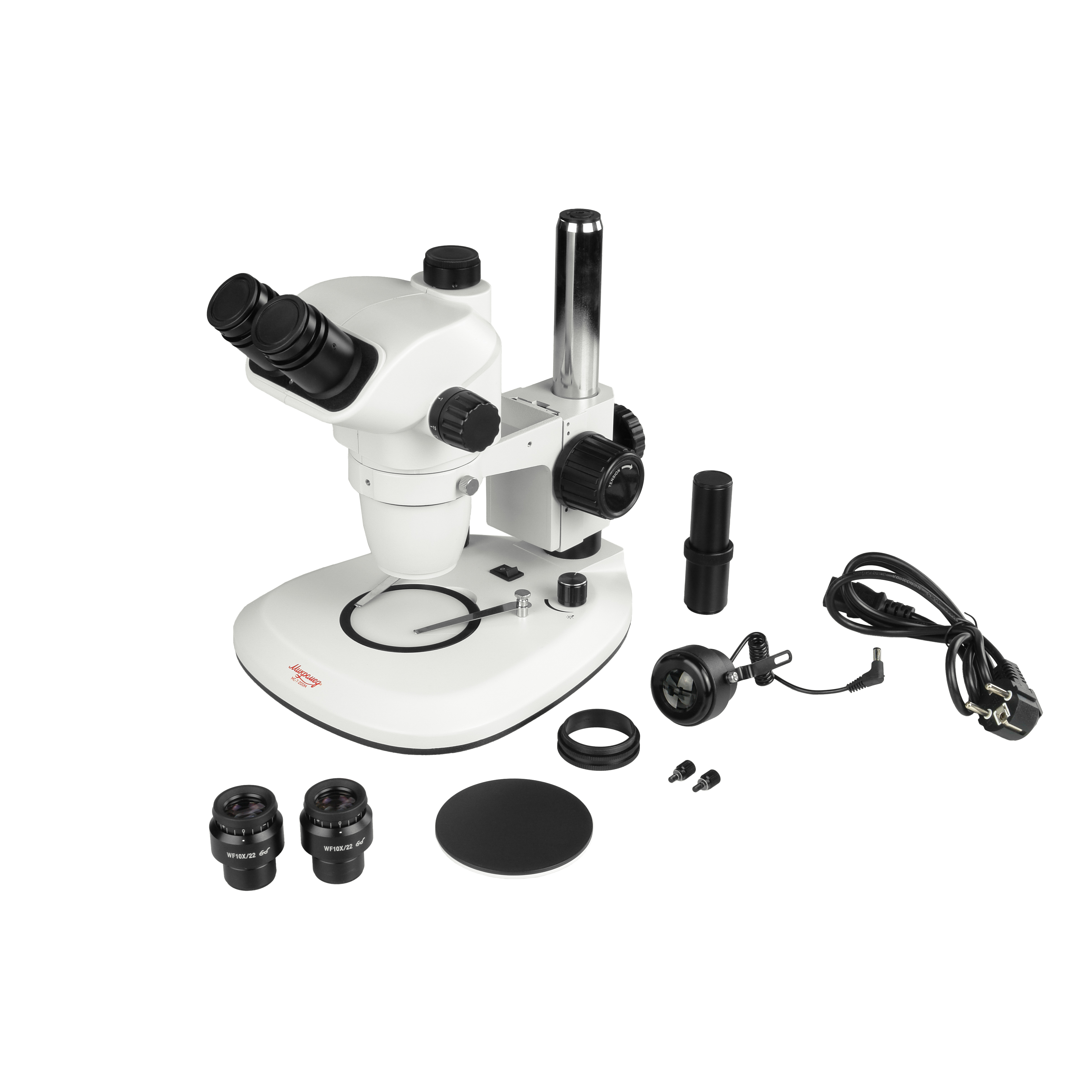 Увеличение микроскопа с окулярами WF 10х/22, входящими в комплект поставки составляет от 6,7х до 45х. Каждый окуляр имеет оптическую конструкцию с вынесенным выходным зрачком и снабжен собственным механизмом диоптрийной коррекции ±5 дптр со шкалой. По дополнительному заказу для микроскопа доступны окуляры WF 15х/16, WF 20х/12, WF 25х/9 и WF 30х/8. С этими окулярами общий диапазон увеличений микроскопа достигает 270х.