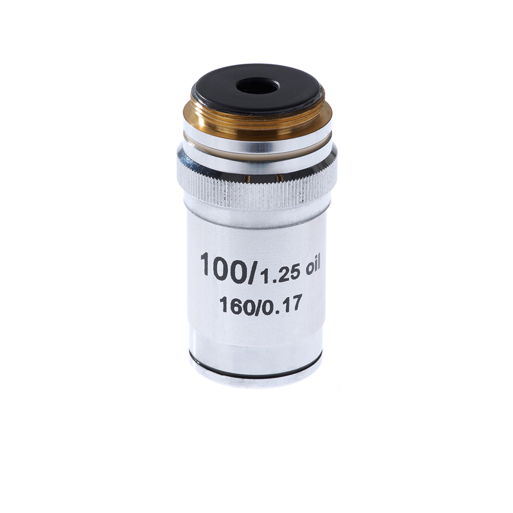 Ахроматический объектив для микроскопов Микромед 1 с длиной тубуса 160 мм (парфокальная высота 45 мм, стандарт DIN). Рассчитан на толщину покровного стекла 0,17 мм.