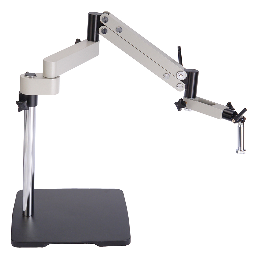 Штатив обеспечивает значительную величину горизонтального выноса головки – расстояние от оптической оси до вертикальной штанги составляет до 950 мм, что позволяет исследовать габаритные объекты и объекты, находящиеся за пределами основания штатива. Значительные величины перемещений достигаются благодаря конструкции штатива с наклонно-поворотной шарнирной руке штатива с пантографом.